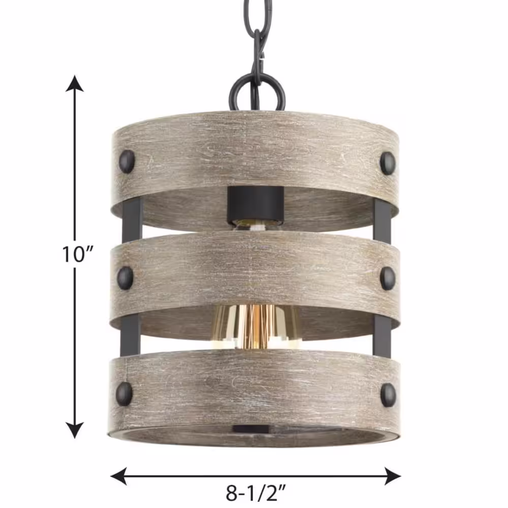 Progress Lighting Gulliver 8-1/2 in. 1-Light Graphite Coastal Drum Mini-Pendant with Weathered Gray Wood Accents