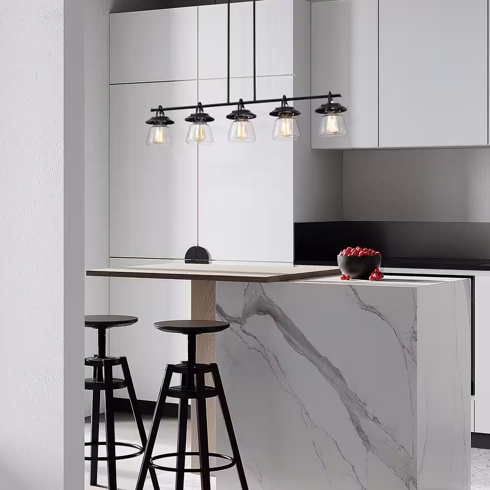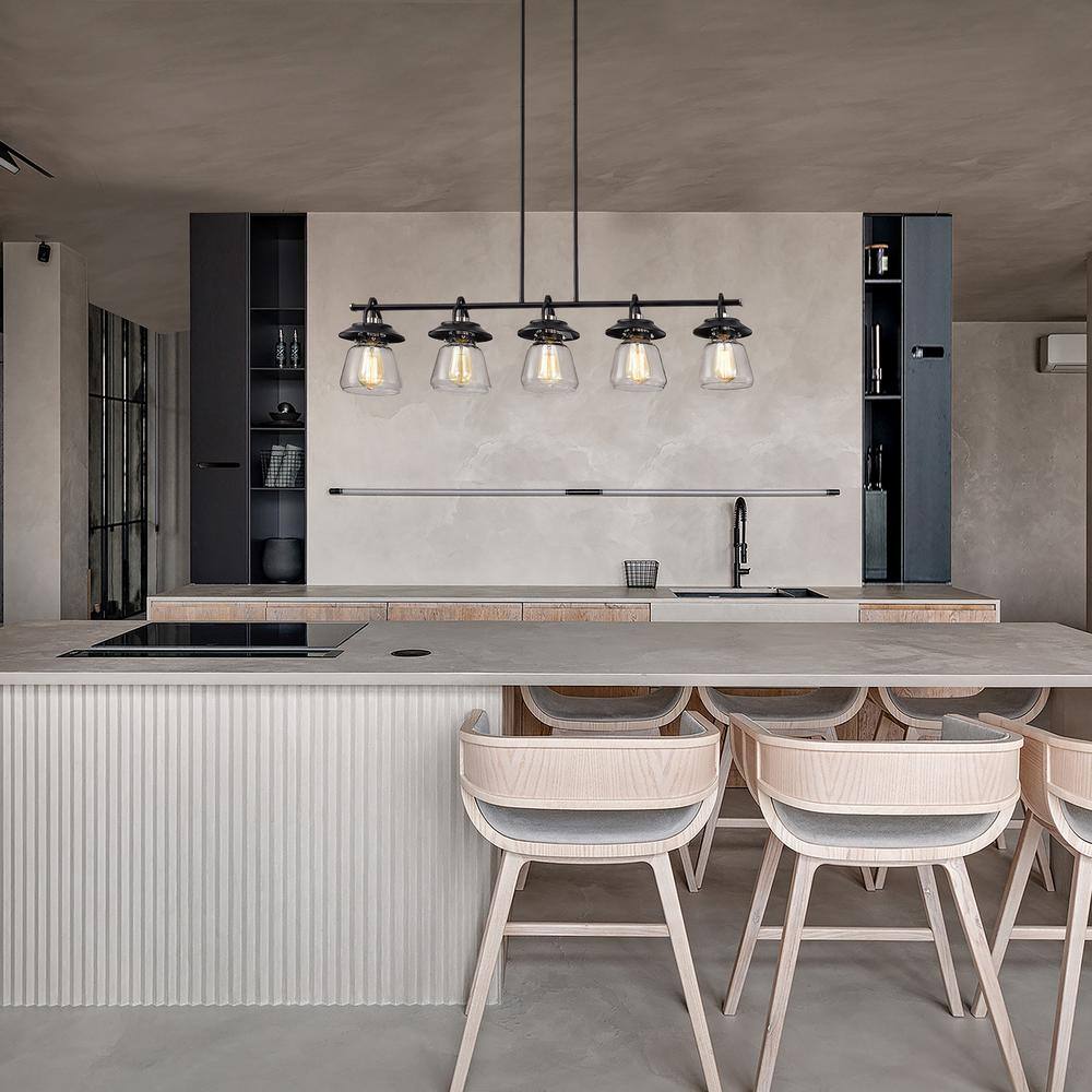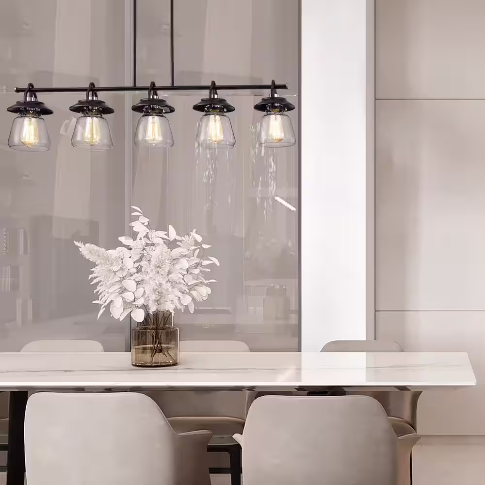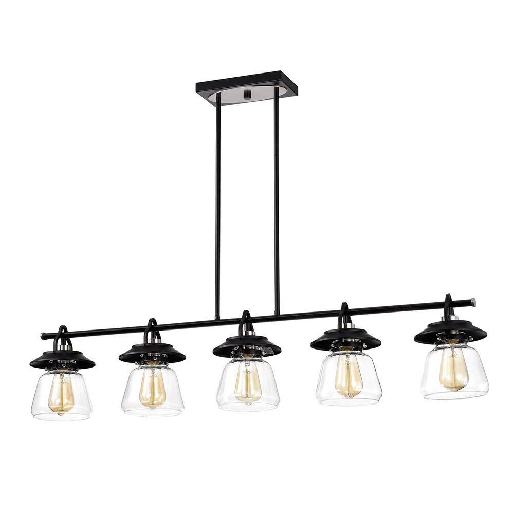 Edvivi Winslett 5-Light Farmhouse Black and Brushed Nickel Industrial Kitchen Island Pendant with Clear Glass Shades