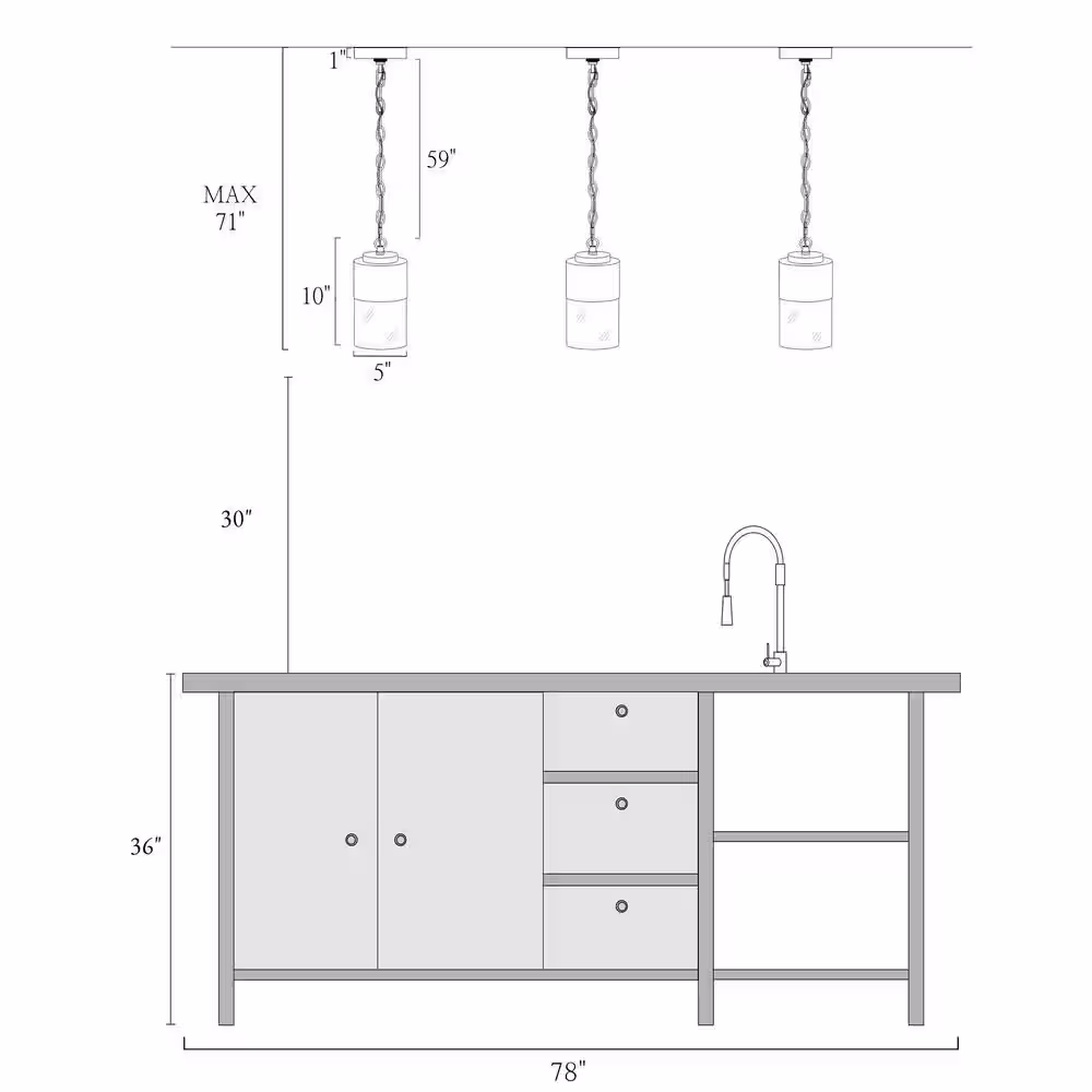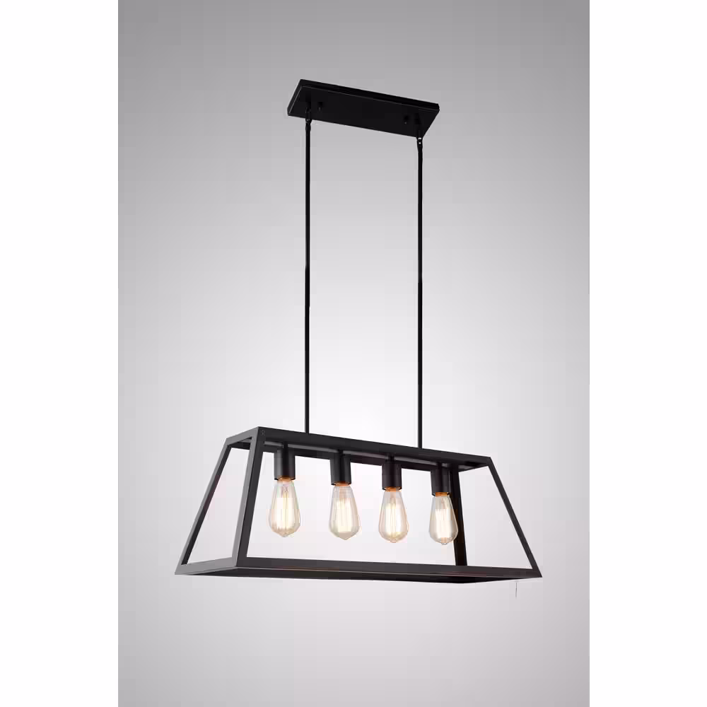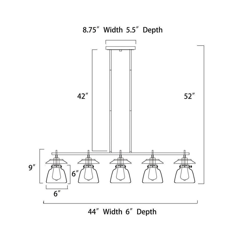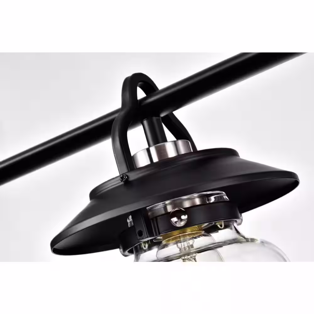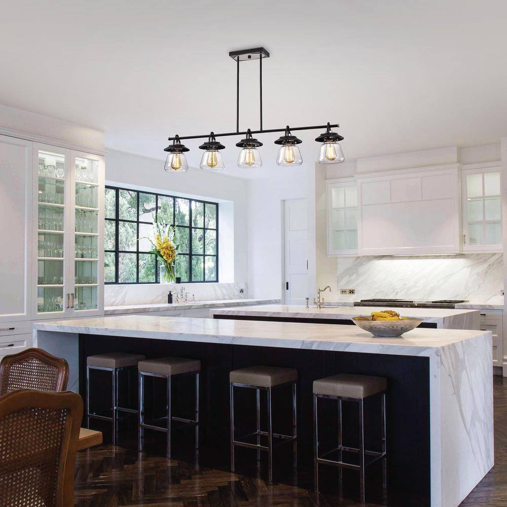 Edvivi Winslett 5-Light Farmhouse Black and Brushed Nickel Industrial Kitchen Island Pendant with Clear Glass Shades