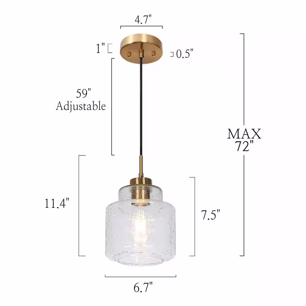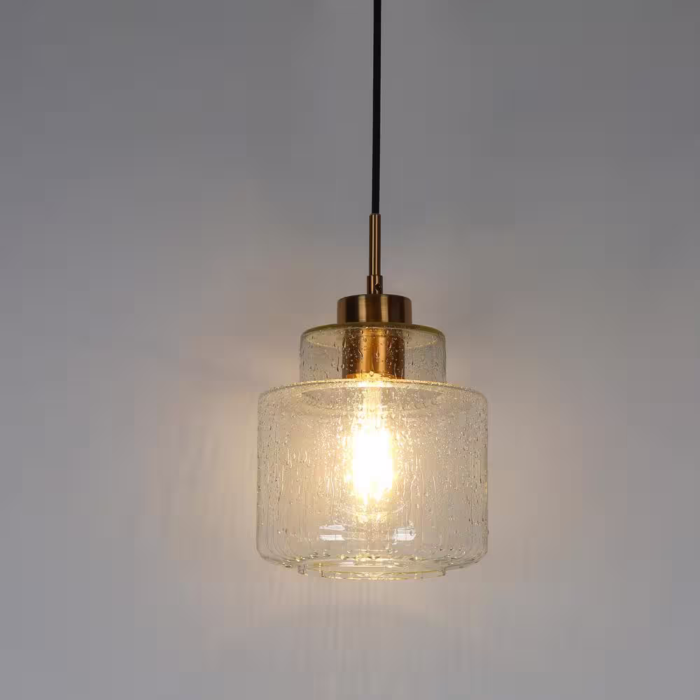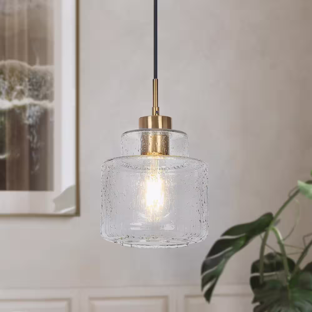 Uolfin Farmhouse Brushed Gold Pendant Light, 10 in. 1-Light Bowl Kitchen Hanging Pendant Light Fixture