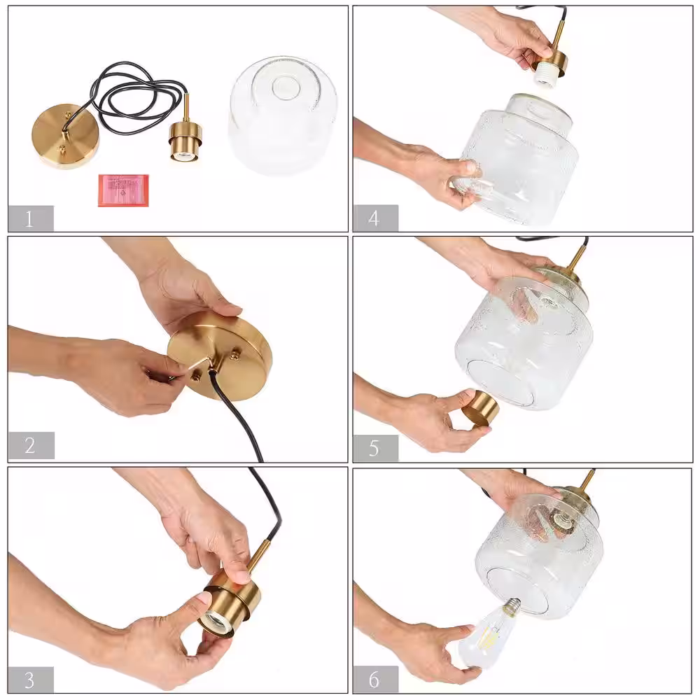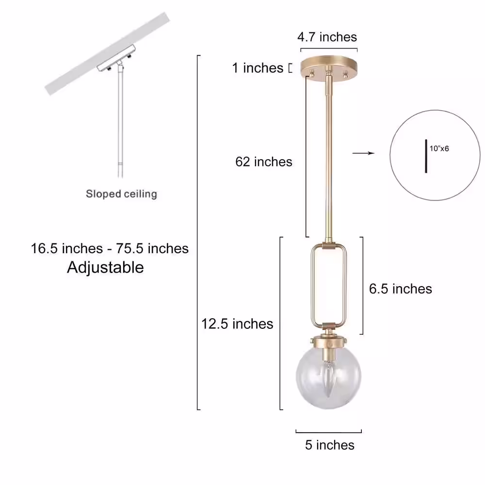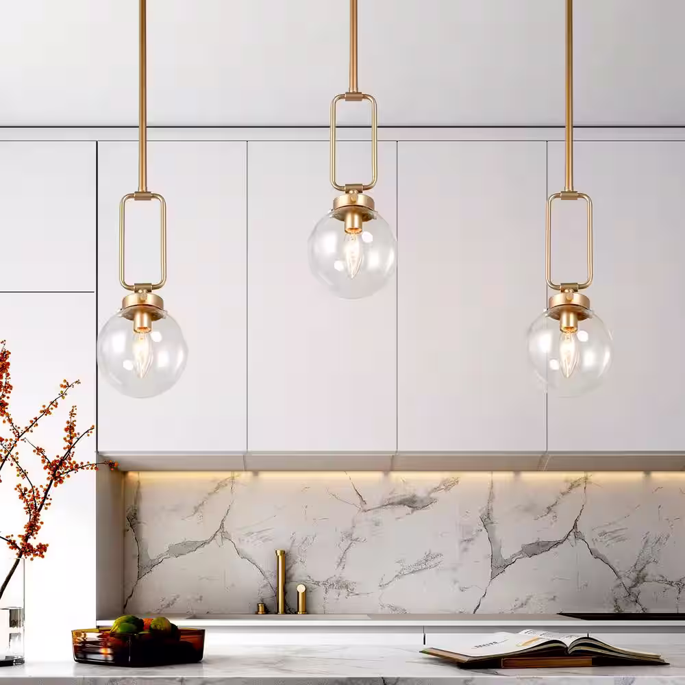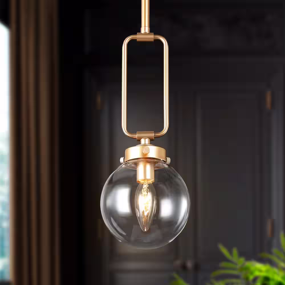 Uolfin Farmhouse Brushed Gold Pendant Light, 10 in. 1-Light Bowl Kitchen Hanging Pendant Light Fixture