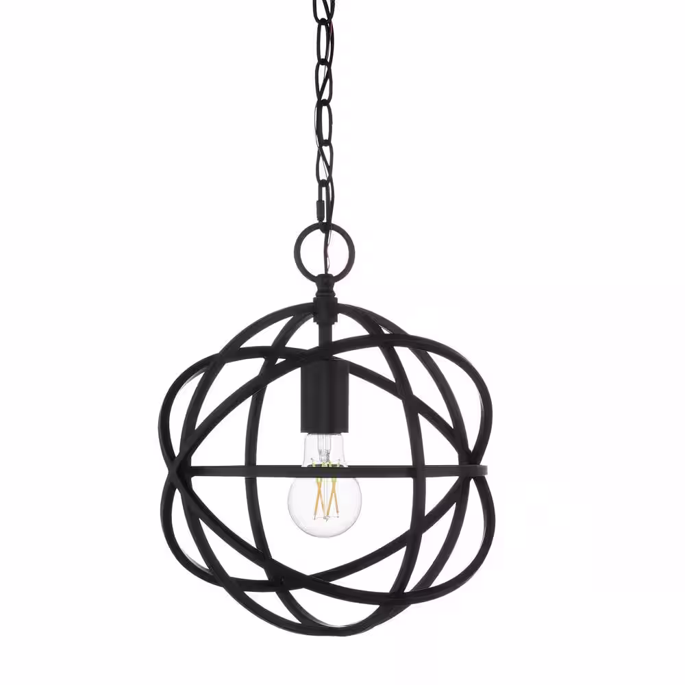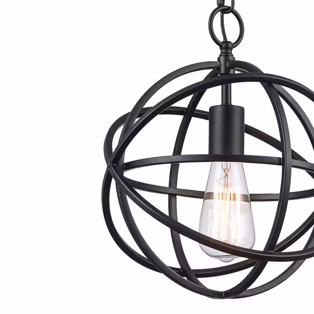 Home Decorators Collection Sarolta Sands 1-Light Black Mini Pendant Light Fixture with Caged Orb Metal Shade