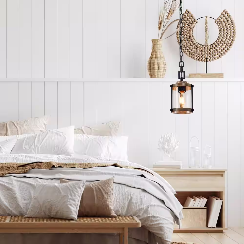 Home Decorators Collection Weyburn 1-Light Bronze Farmhouse Mini Pendant Light Fixture with Caged Metal Shade