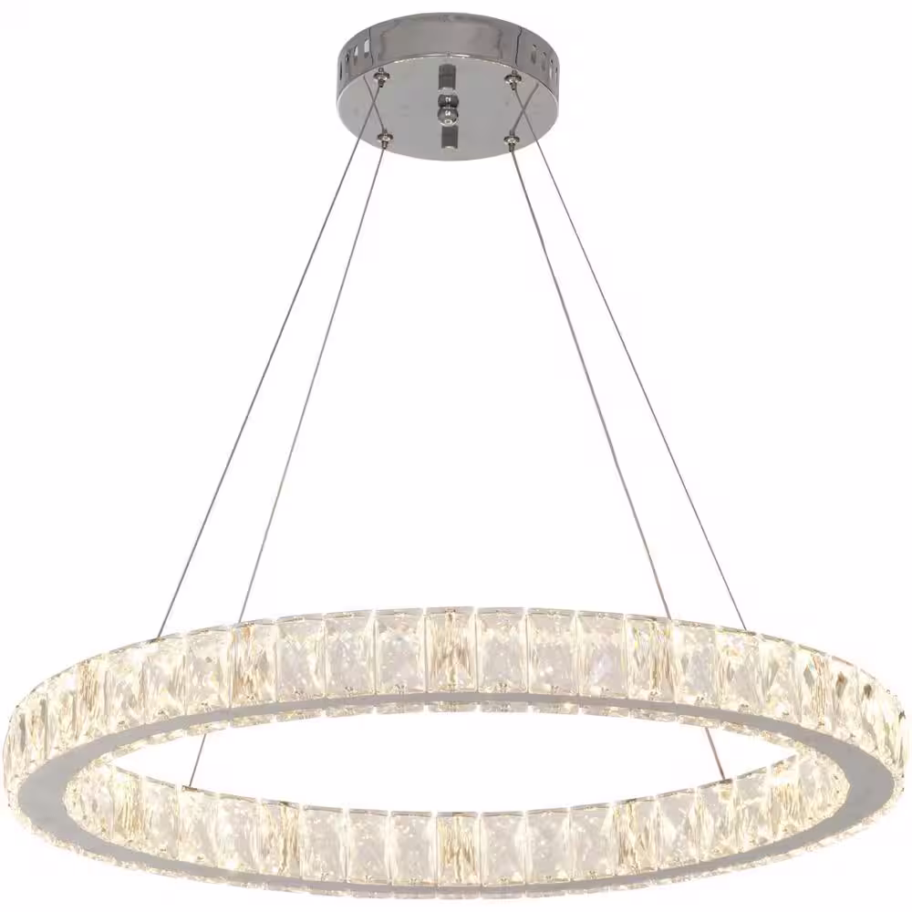 Home Decorators Collection 24 in. Chrome Integrated LED Pendant with Clear Crystals