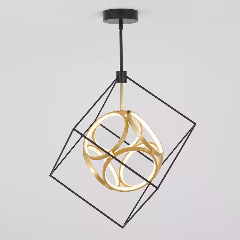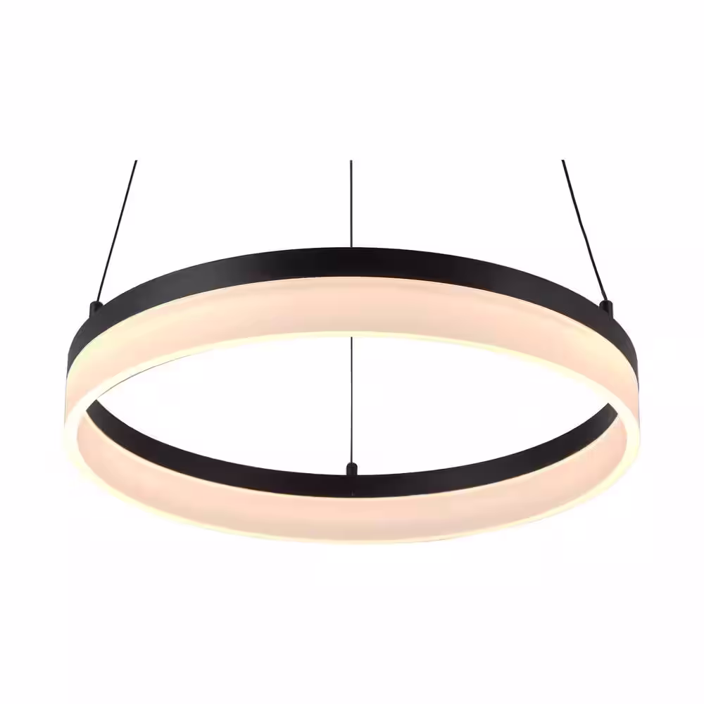Home Decorators Collection Kipling 35-Watt Black Modern Integrated LED Pendant Light with Frosted Acrylic Shade
