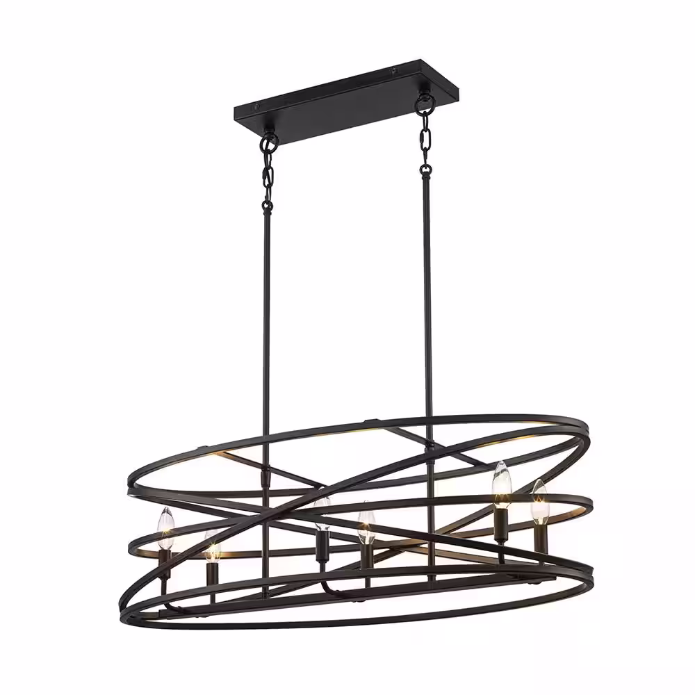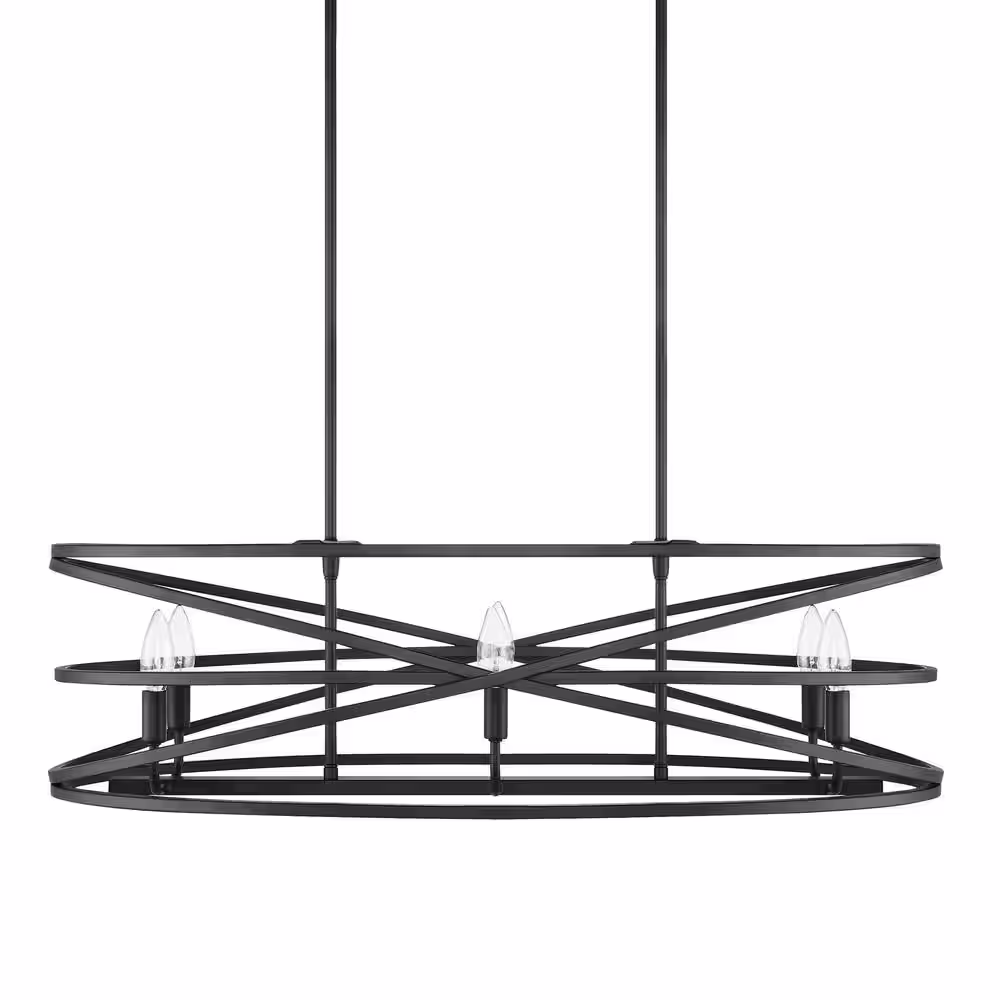 Home Decorators Collection Sarolta Sands 6-Light Black Kitchen Island Pendant Light Fixture with Linear Metal Shade