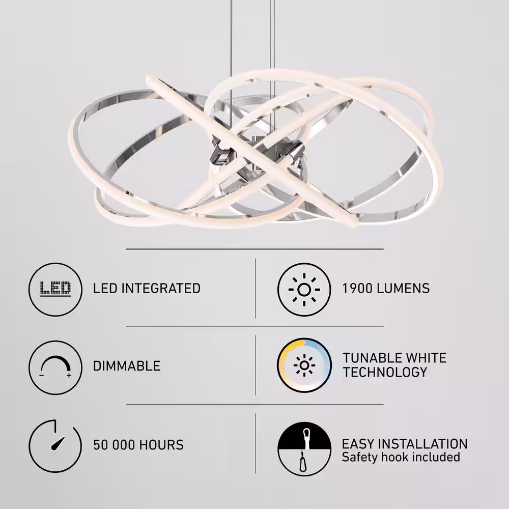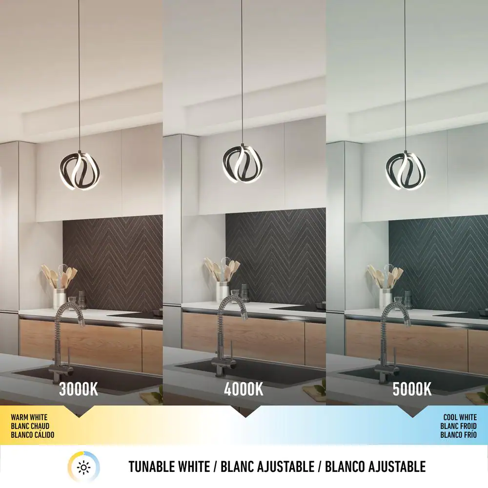 Artika Malibu 30-Watt 1 Light Black Modern 3 CCT Integrated LED Pendant Light Fixture for Dining Room or Kitchen