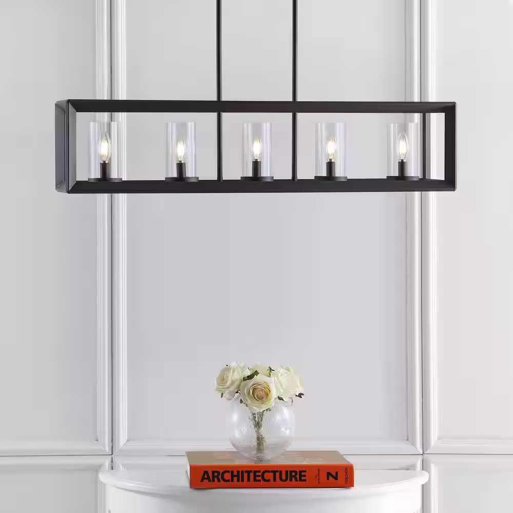JONATHAN Y Anna 38.5 in. 5-Light Oil Rubbed Bronze Metal/Glass LED Pendant