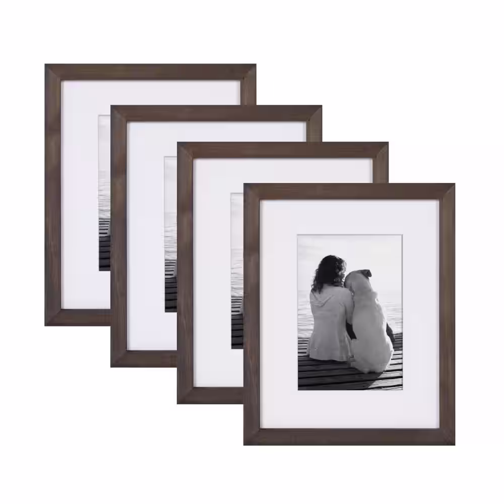DesignOvation Gallery 5 in. x 7 in. Matted to 3.5 in. x 5 in. Walnut Brown Picture Frame (Set of 4)