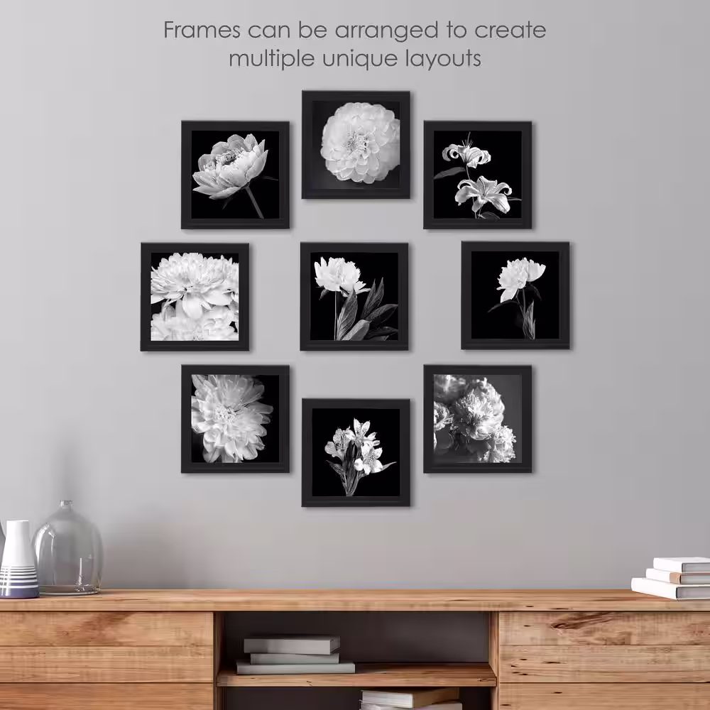 Melannco 9.25 in. x 9.25 in. MDF Black Picture Frames/Hold 8 x 8 Photos, Set of 9
