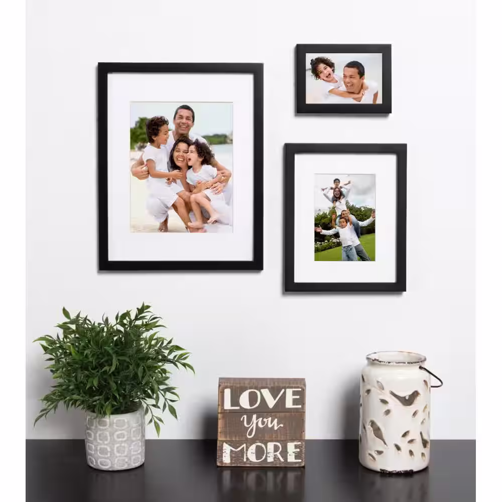 DesignOvation Gallery 11 in. x 14 in. Matted to 8 in. x 10 in. Black Picture Frame (Set of 4)