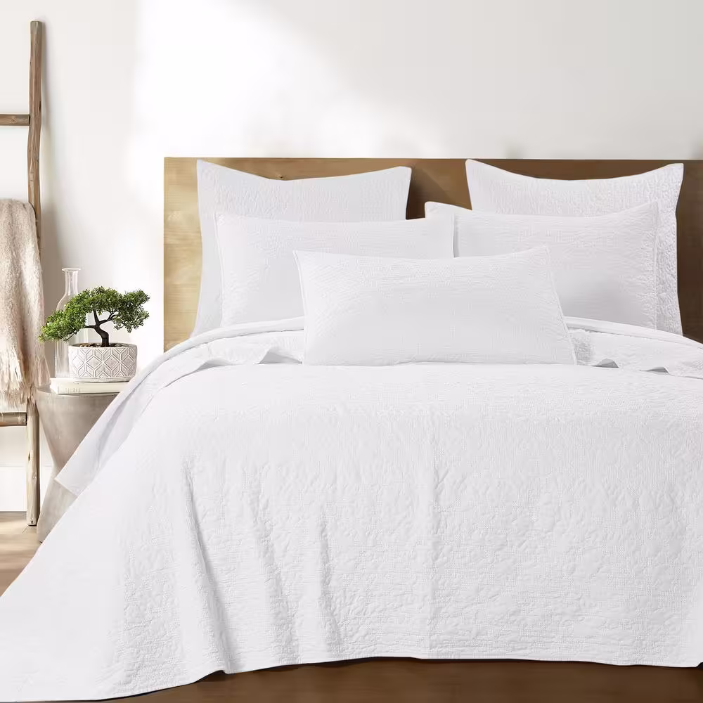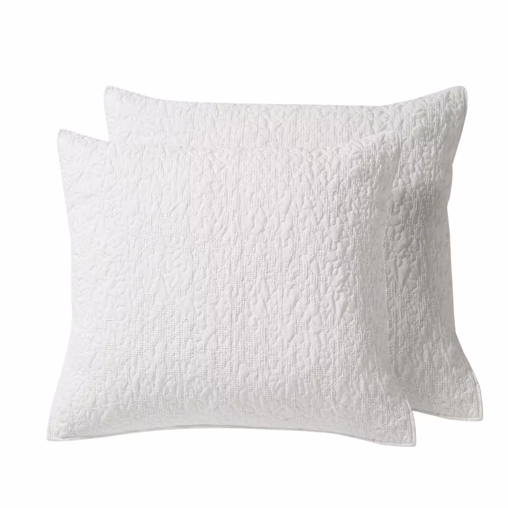 None Emory White 2-Piece Waffle Jacquard Scroll Leaf Quilted Microfiber Euro Sham (Set of 2)