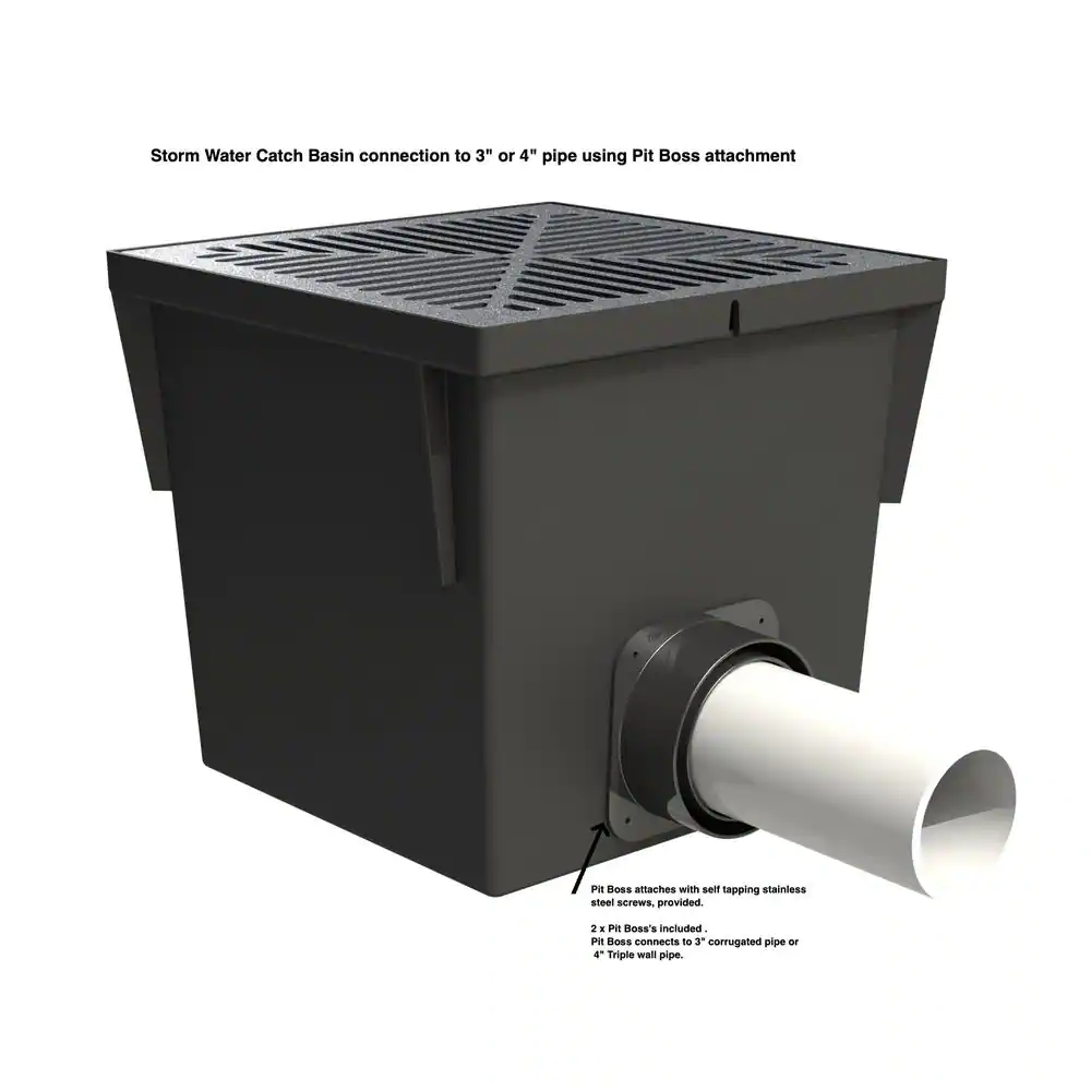 RELN 13 in. Square Low Profile Drainage Catch Basin Kit with Grate, Black