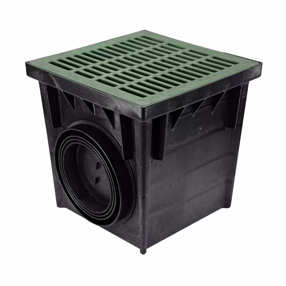 NDS 9 in. Plastic Square Low Profile Drainage Catch Basin with Grate in Green