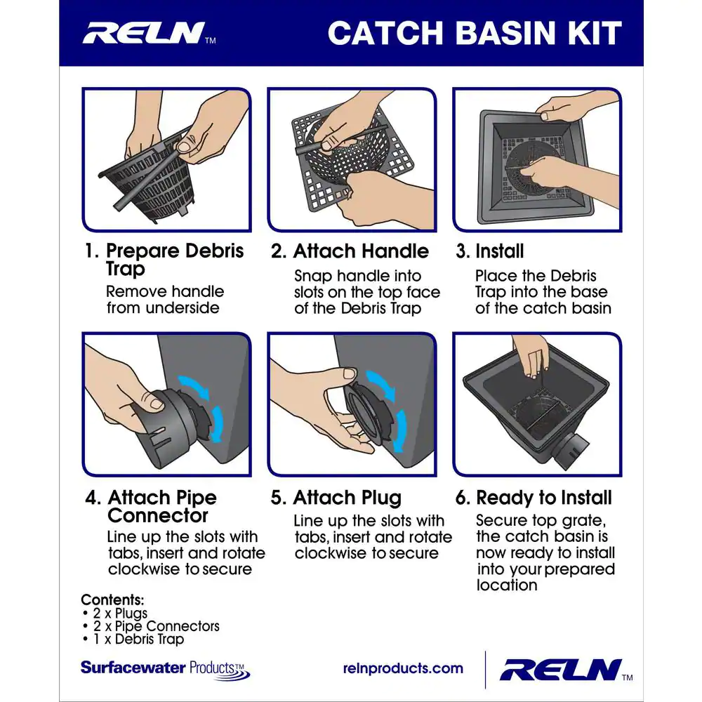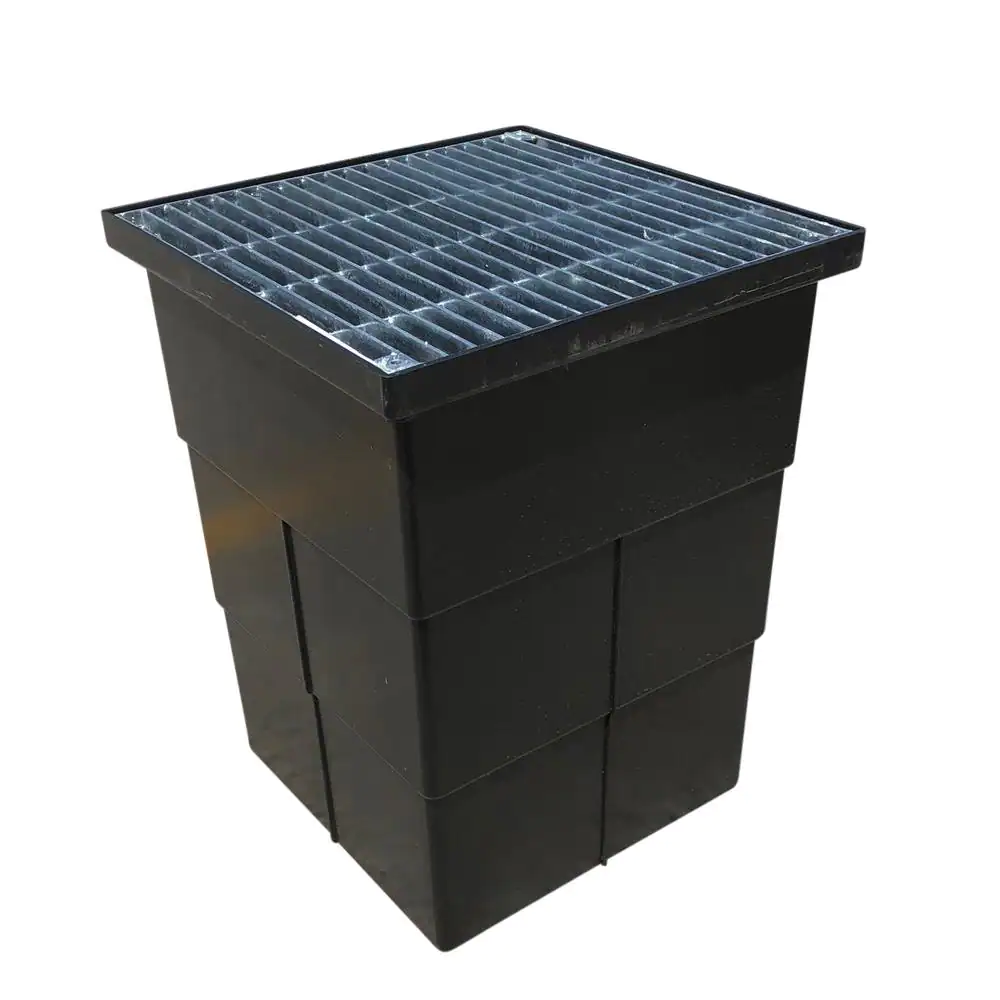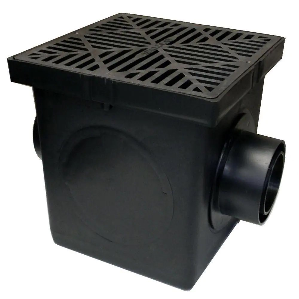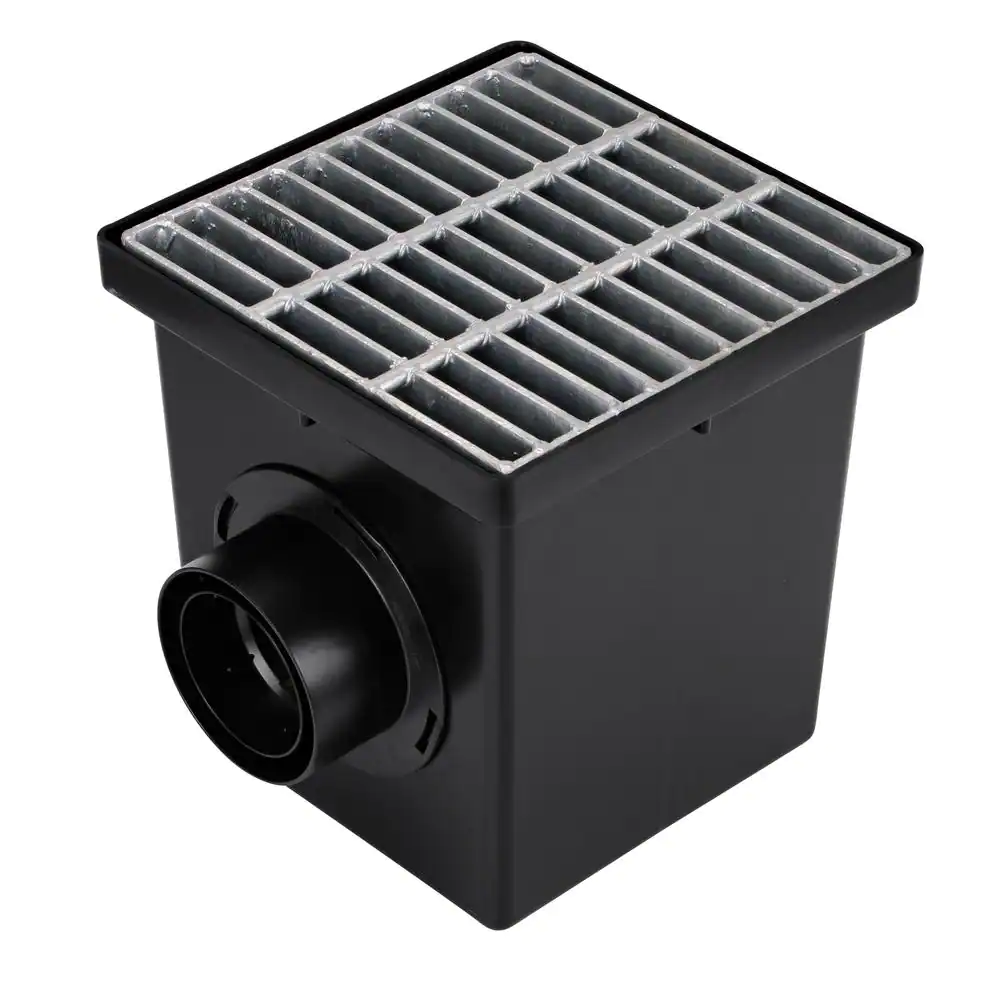NDS 12 in. Square Catch Basin Drain Kit with 2-Opening Catch Basin Steel Grate 2-Outlet Adapters 1-Outlet Plug