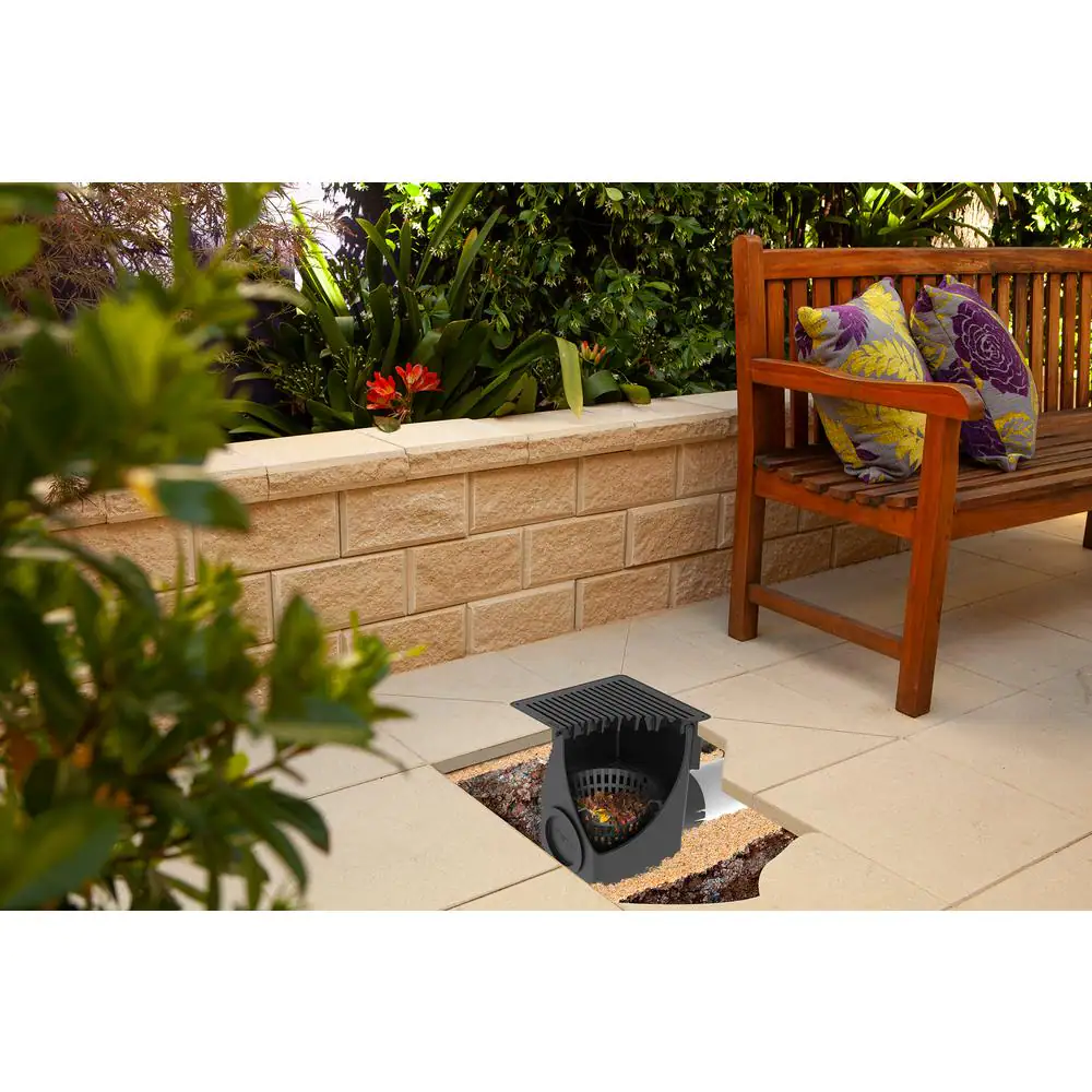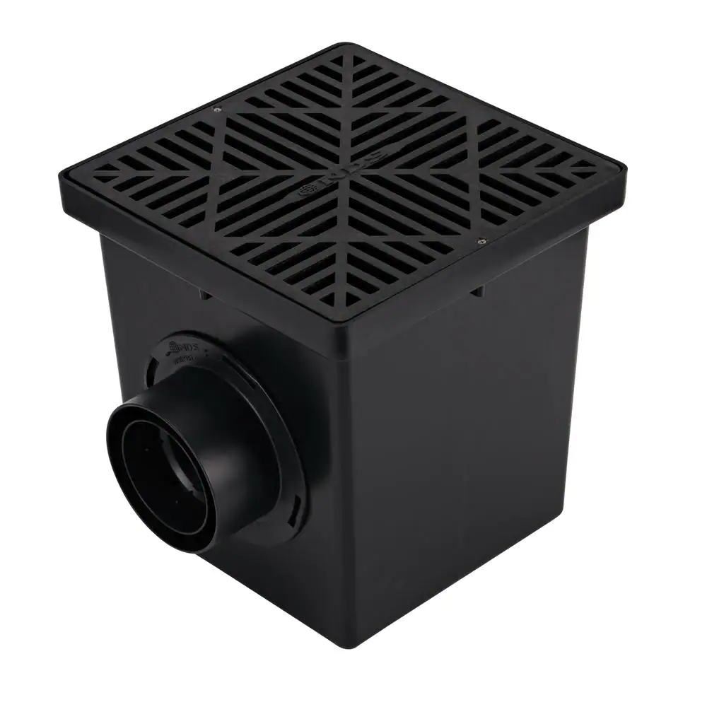 NDS 9 in. x 9 in. Plastic Square Drainage Catch Basin in Black, 2 Opening Kit
