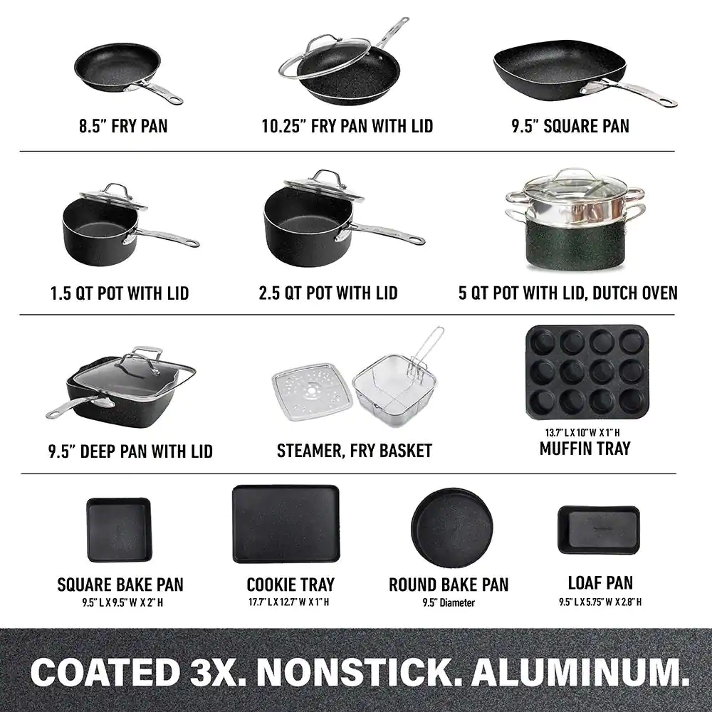 GRANITESTONE 20-Piece Aluminum Ultra-Durable Non-Stick Diamond Infused Cookware and Bakeware Set