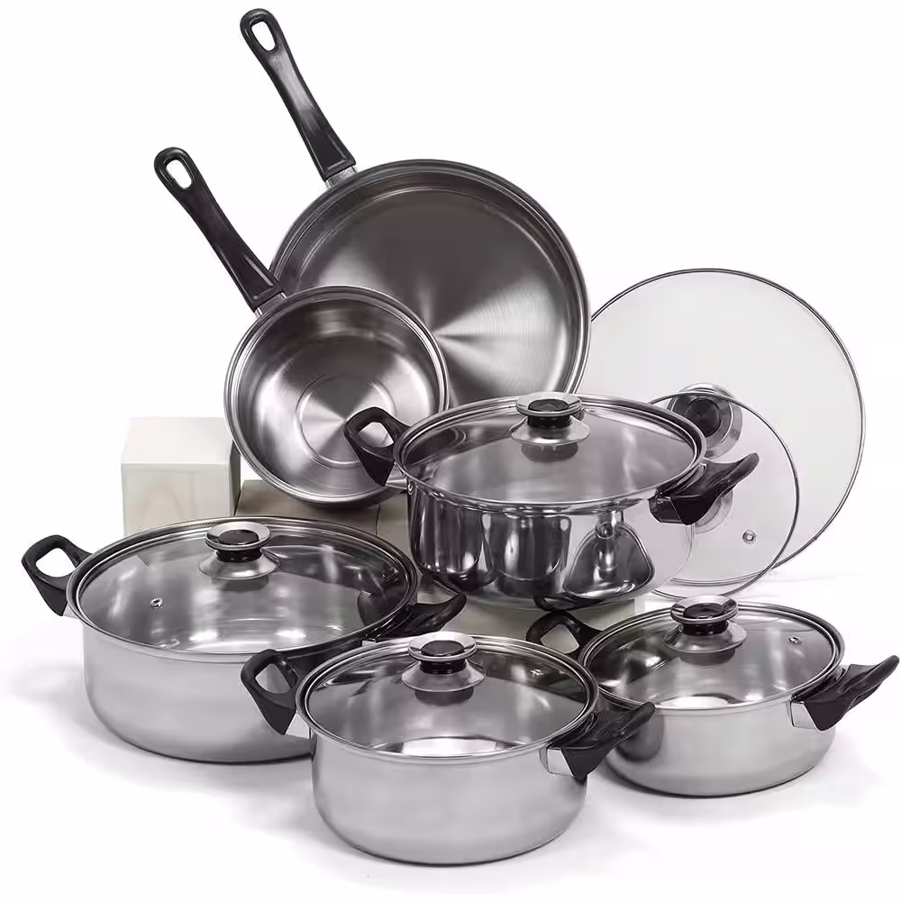 Gibson Home Ancona 12-Piece Stainless Steel Belly Shaped Cookware Set with Kitchen Tools