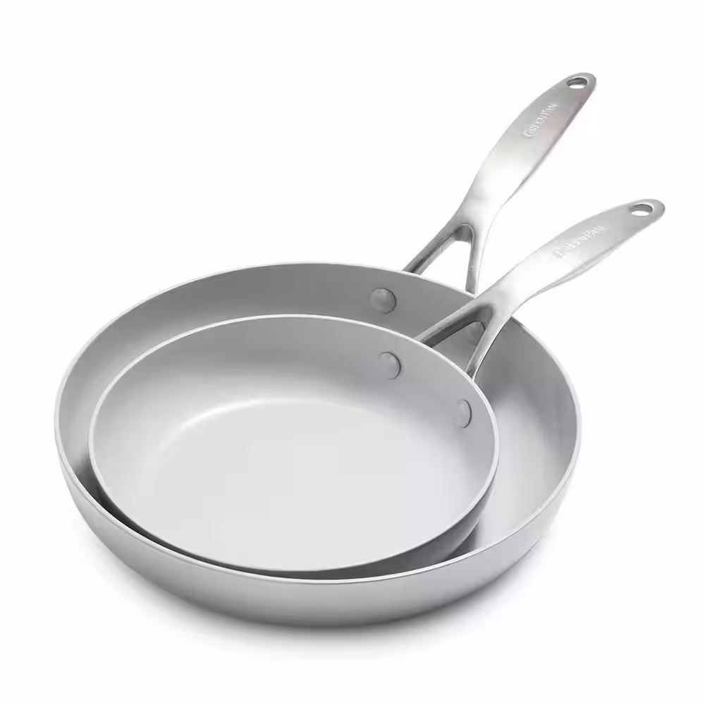 GreenPan Venice Pro Tri-Ply Stainless Steel Healthy Ceramic Nonstick 2 Piece 8 in. and 10 in. Frying Pan Skillet Set