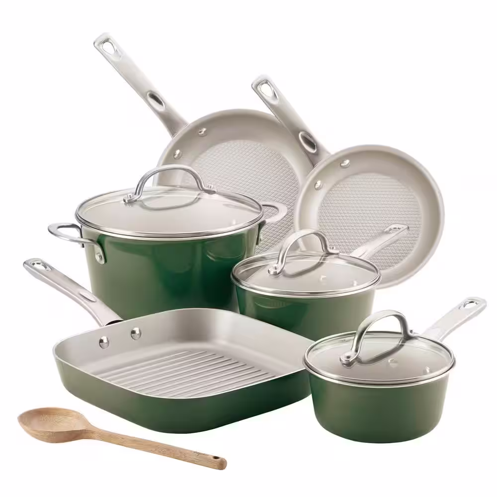 Ayesha Curry Ayesha Home Collection Porcelain Enamel Nonstick Cookware Set, 10-Piece, Basil Green