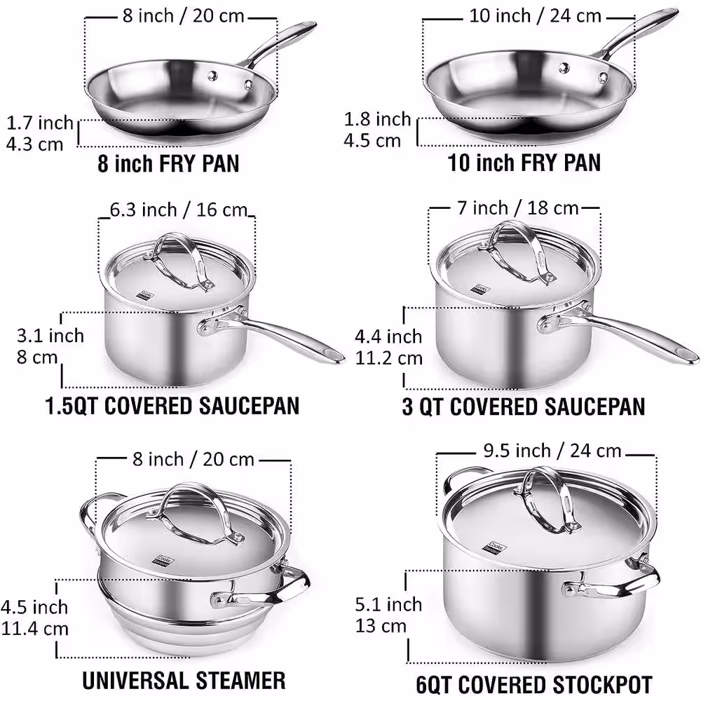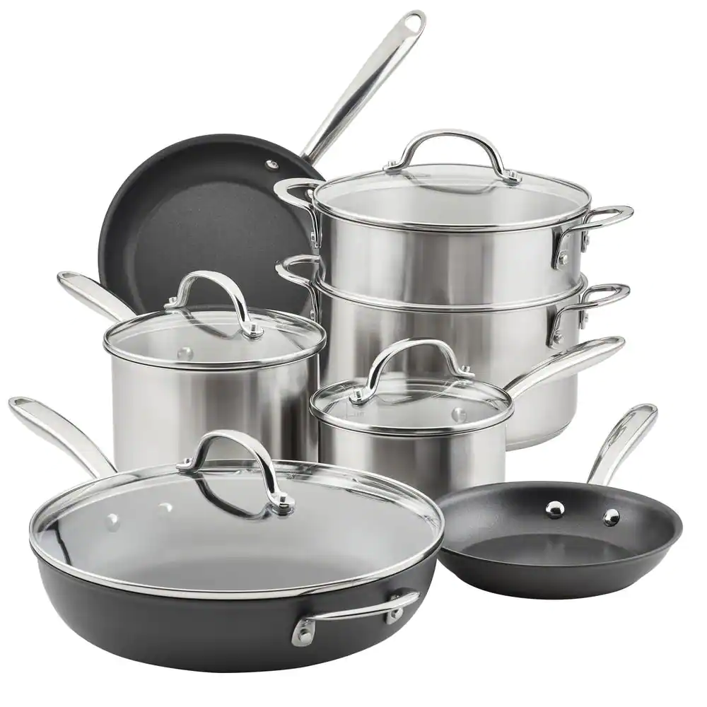 Rachael Ray 11-Piece Stainless Steel Professional Cookware Set with Lids