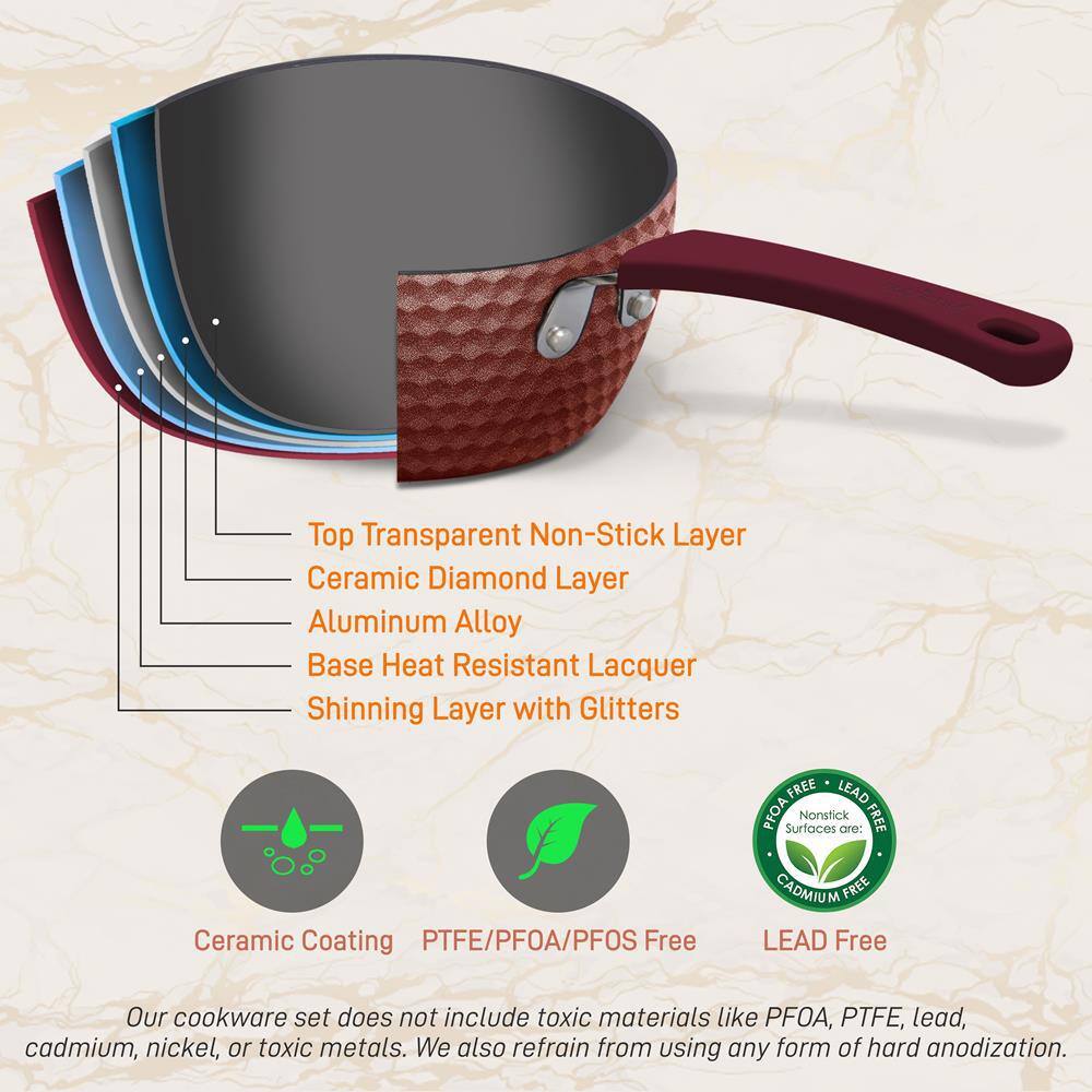 NutriChef 11 Pc Nonstick Diamond Pattern Kitchen Cookware Pot & Pan Set, Purple