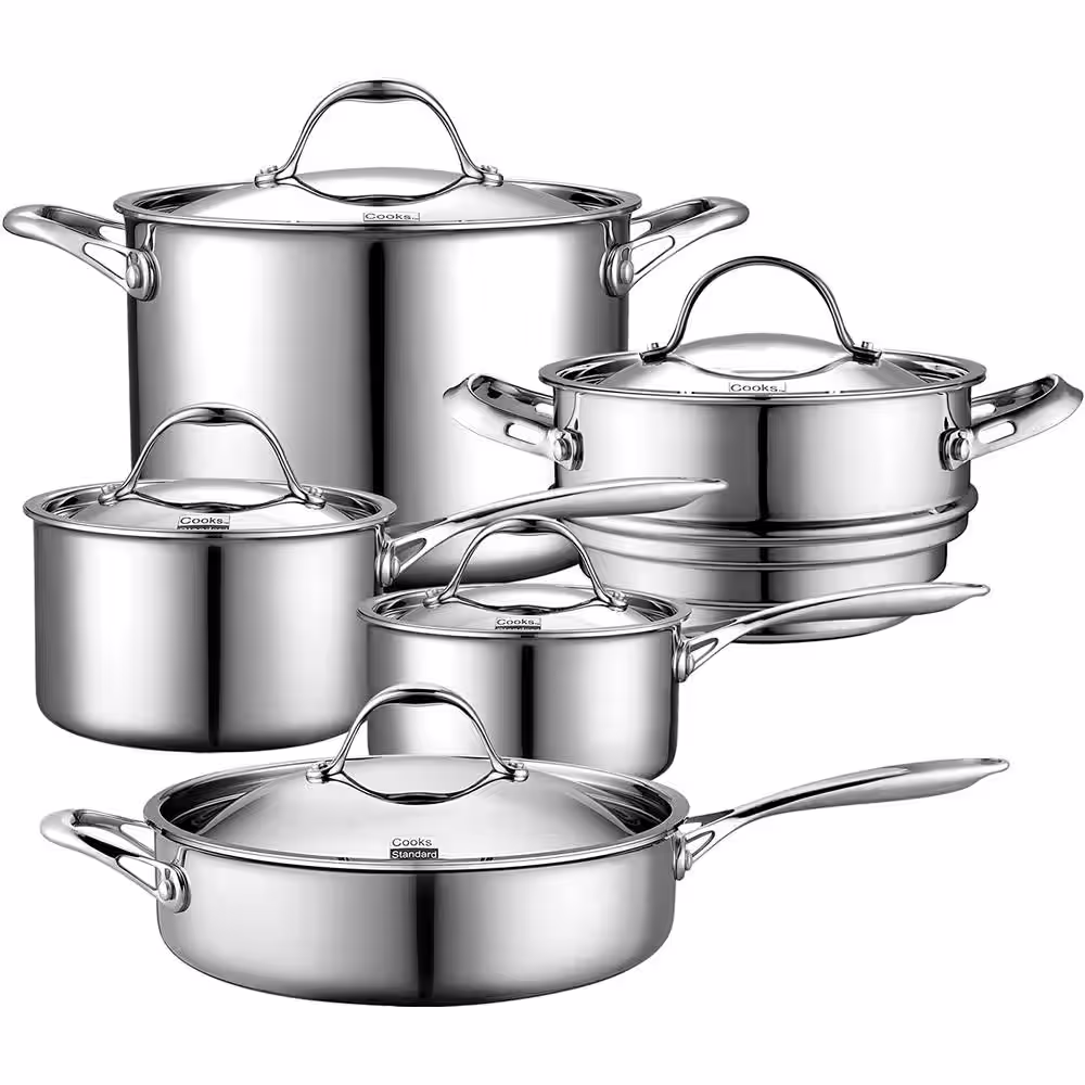 GreenPan Venice Pro Tri-Ply Stainless Steel Healthy Ceramic Nonstick 10" and 12" Frying Pan Skillet Set