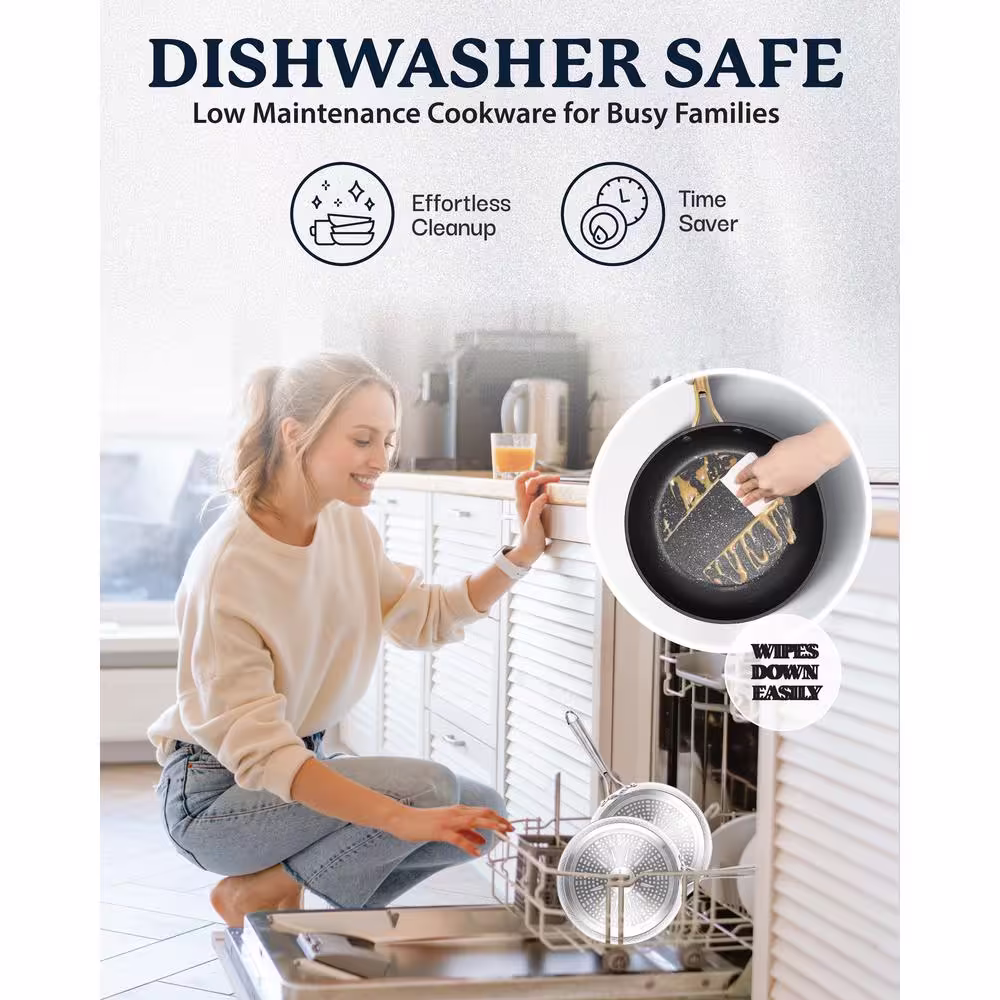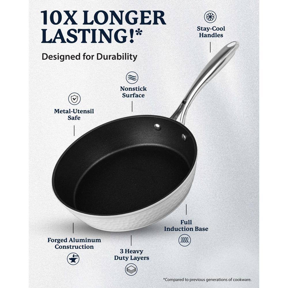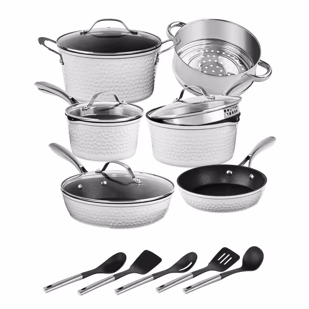 GRANITESTONE Charleston Collection 15-Piece Aluminum Hammered Nonstick Cookware Set with Utensils in White