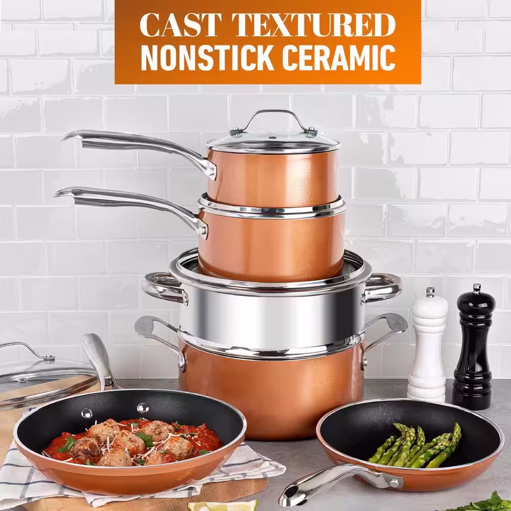 Gotham Steel 10-Piece Cast-Textured Aluminum Ti-Ceramic Nonstick Cookware Set in Copper