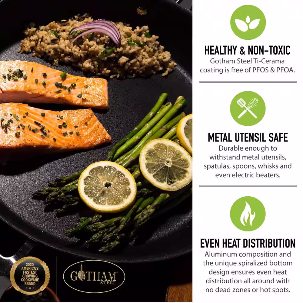 Gotham Steel 10-Piece Cast-Textured Aluminum Ti-Ceramic Nonstick Cookware Set in Platinum