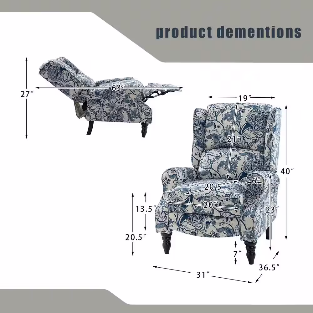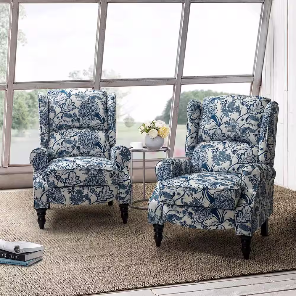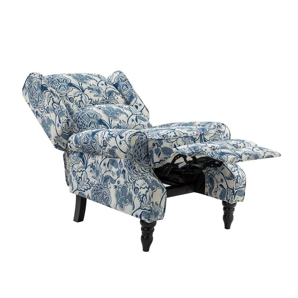 Noble House 26.5 inches Width Big and Tall White/Blue Polyester Wing Chair Recliner