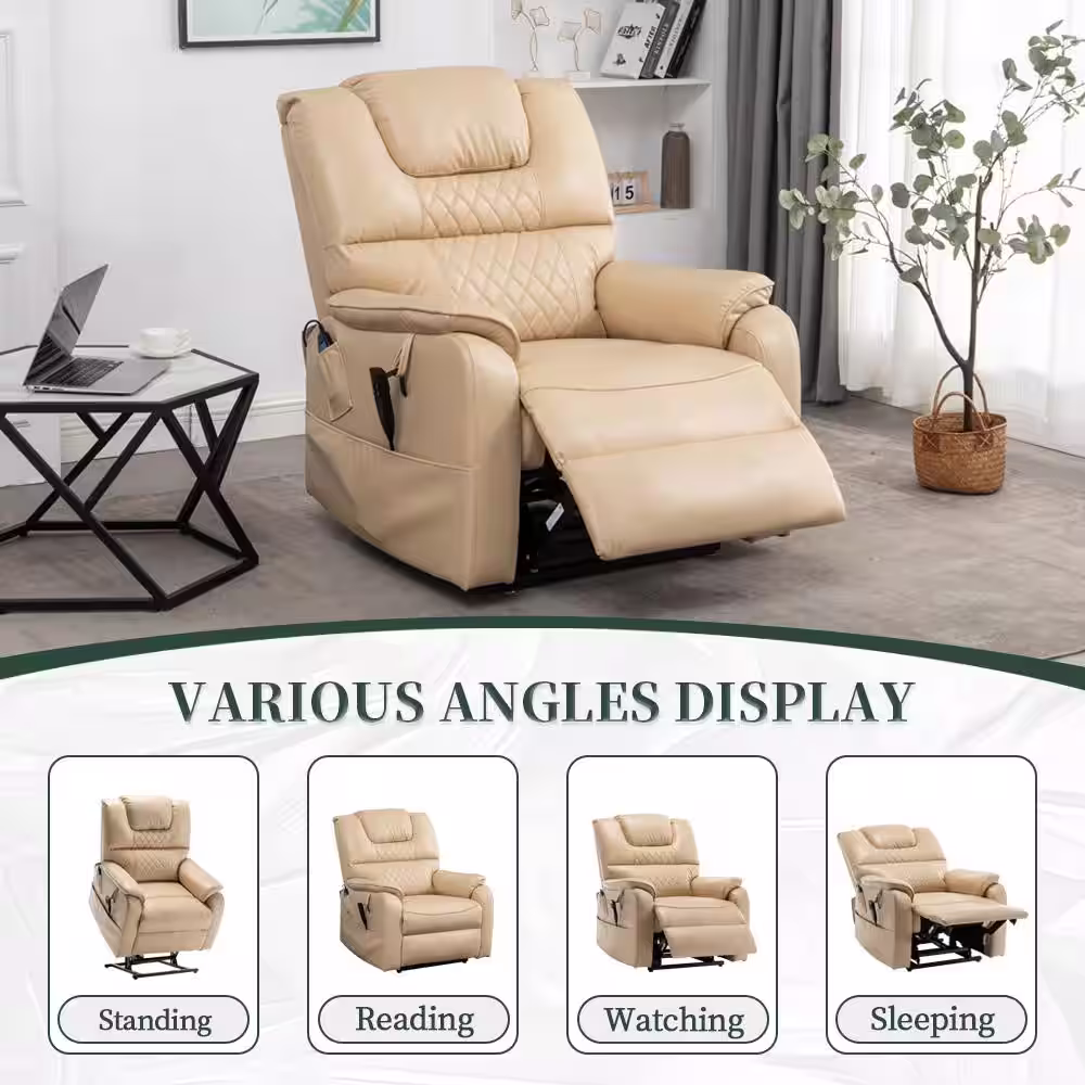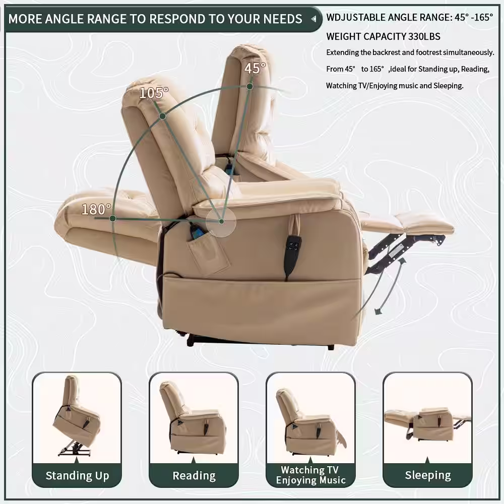 Clihome Beige Ergonomic Velvet Power Lift Recliner Chair for Elderly with Side Pocket and Remote Control