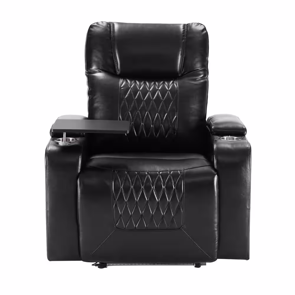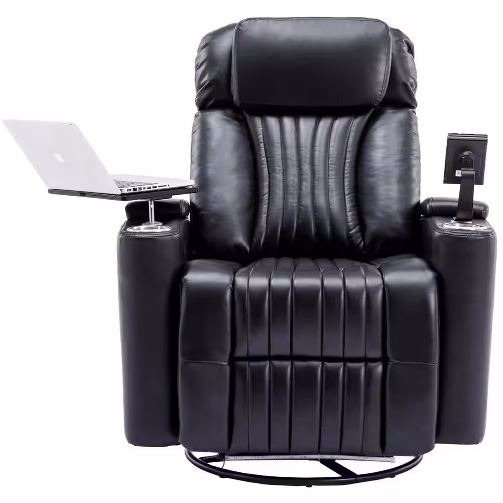 Merax Black PU Power Motion Home Theater Recliner with USB Charging Port and 360° Swivel Tray Table