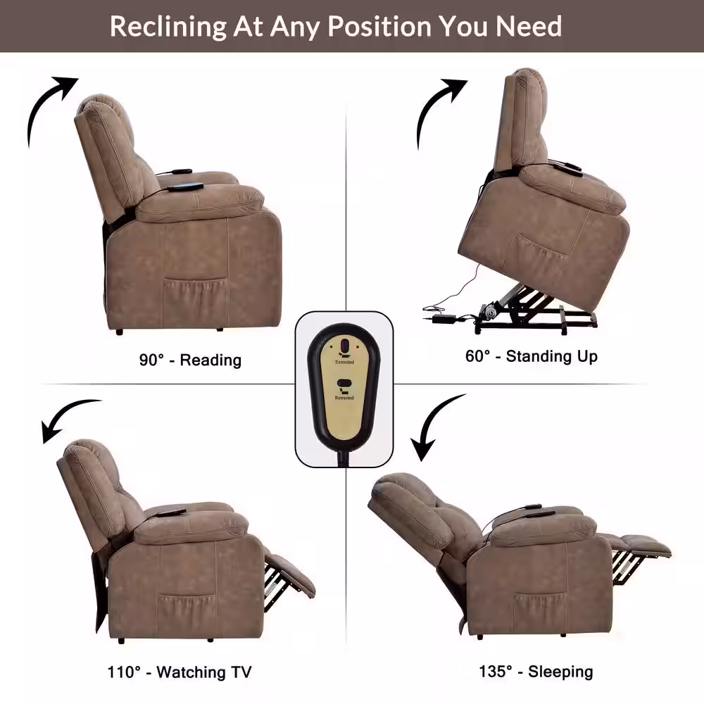 Qualler Brown Faux Leather Power Lift Recliner Chair with Adjustable Massage and Heating System