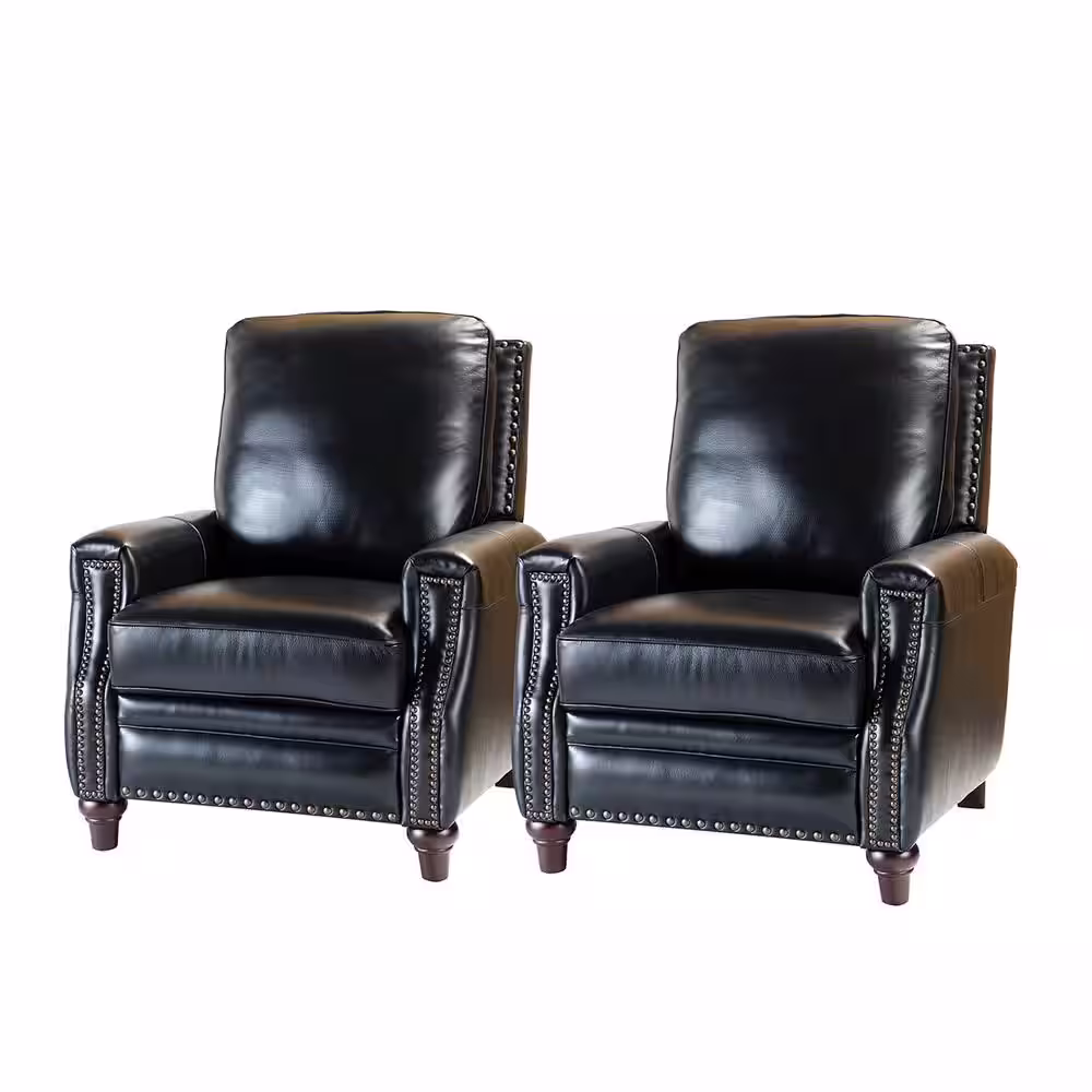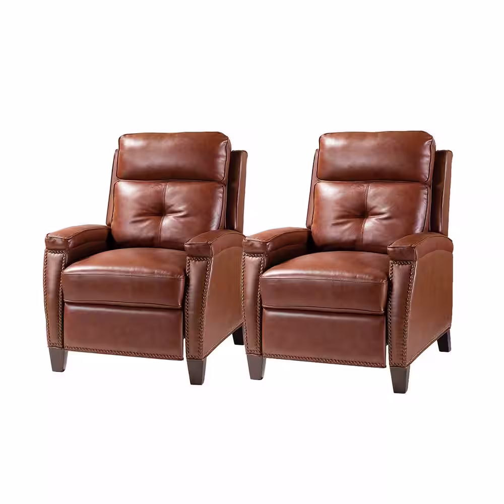 JAYDEN CREATION Florina Modern Brown Upholstery Genuine Cigar Leather Recliner with Nailhead Trim (Set of 2)