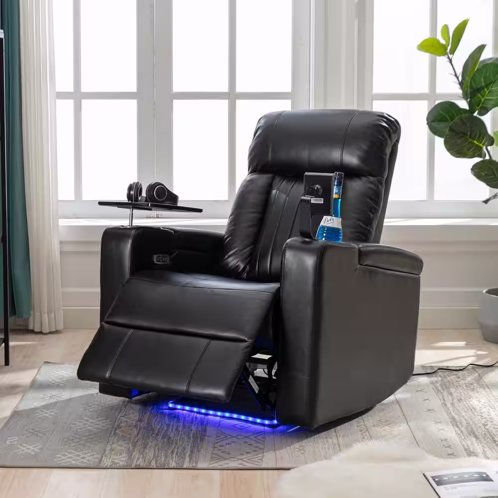 None Lehman 35 in. Width Big and Tall Navy Blue Faux Leather 3 Position Recliner