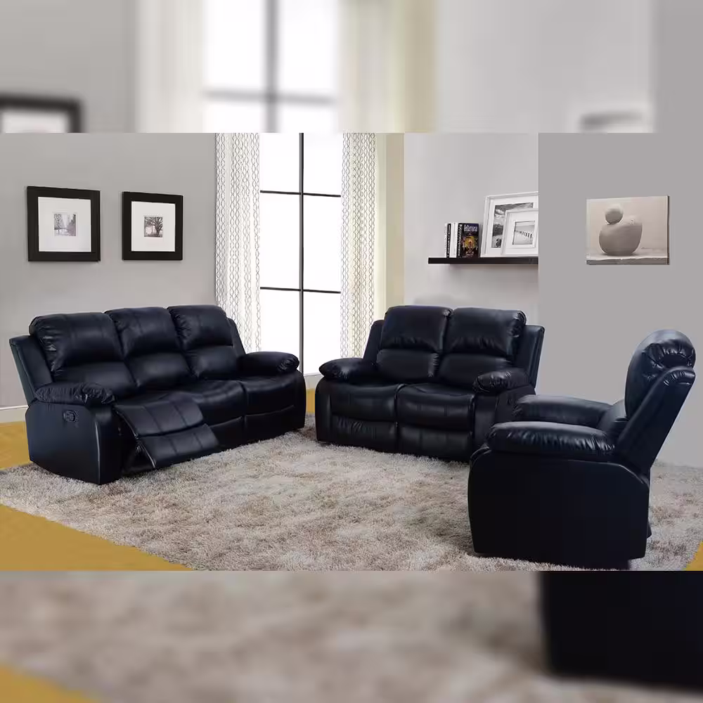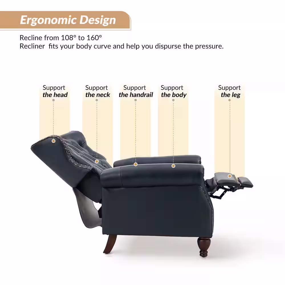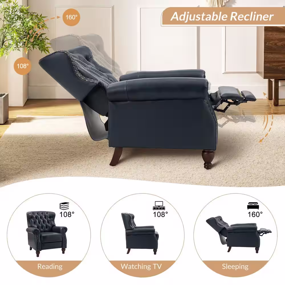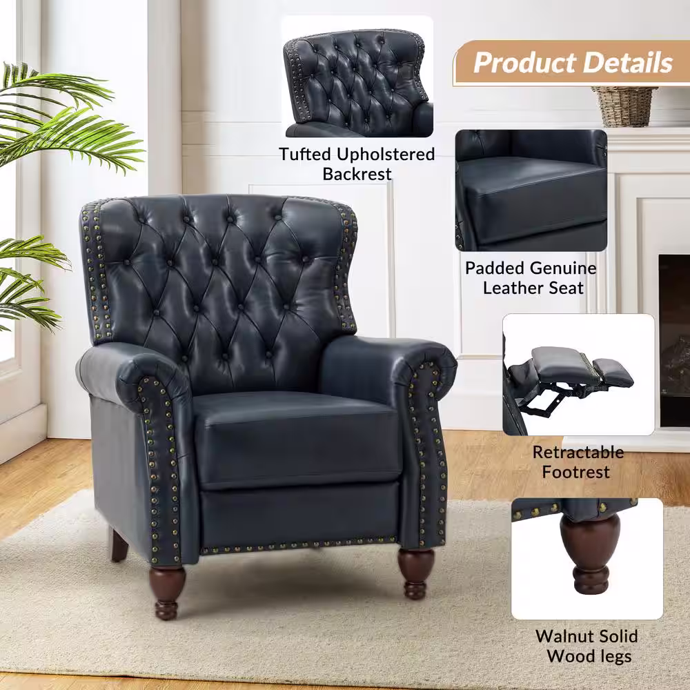 JAYDEN CREATION Isabel Navy Genuine Leather Recliner with Tufted Back and Rolled Arms
