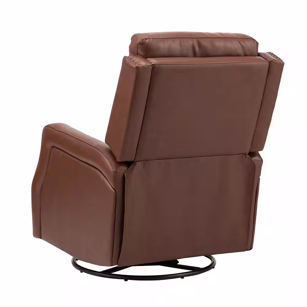 None Ifigenia 28.74 in. Wide Brown Genuine Leather Swivel Rocker Recliner with Tufted Back