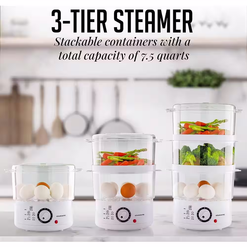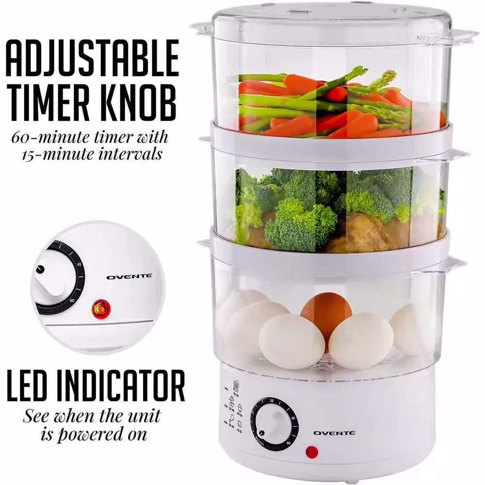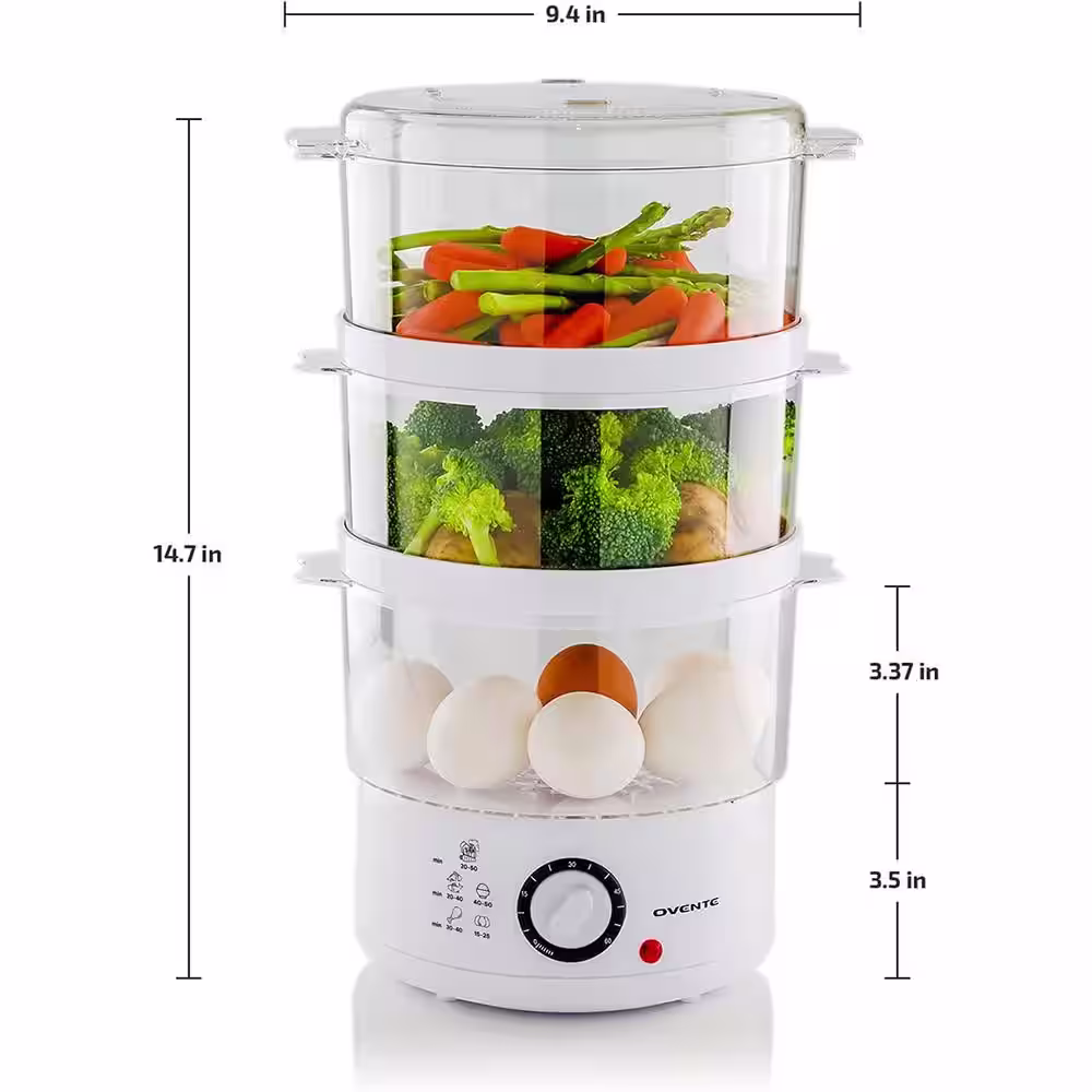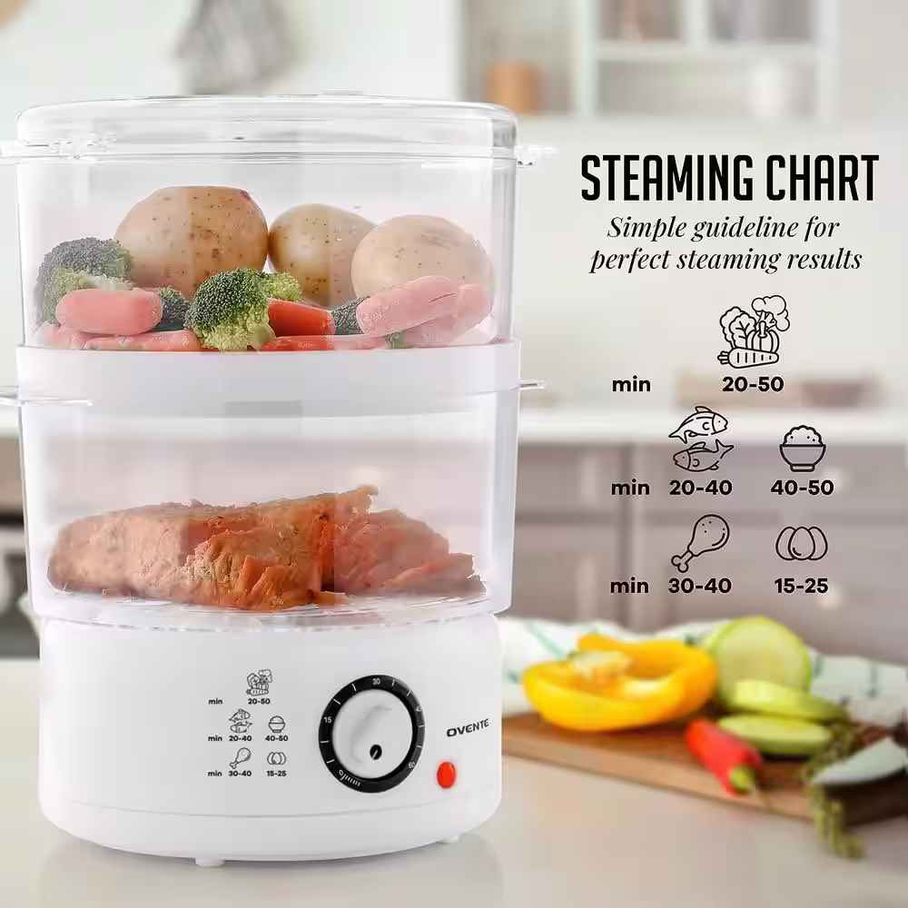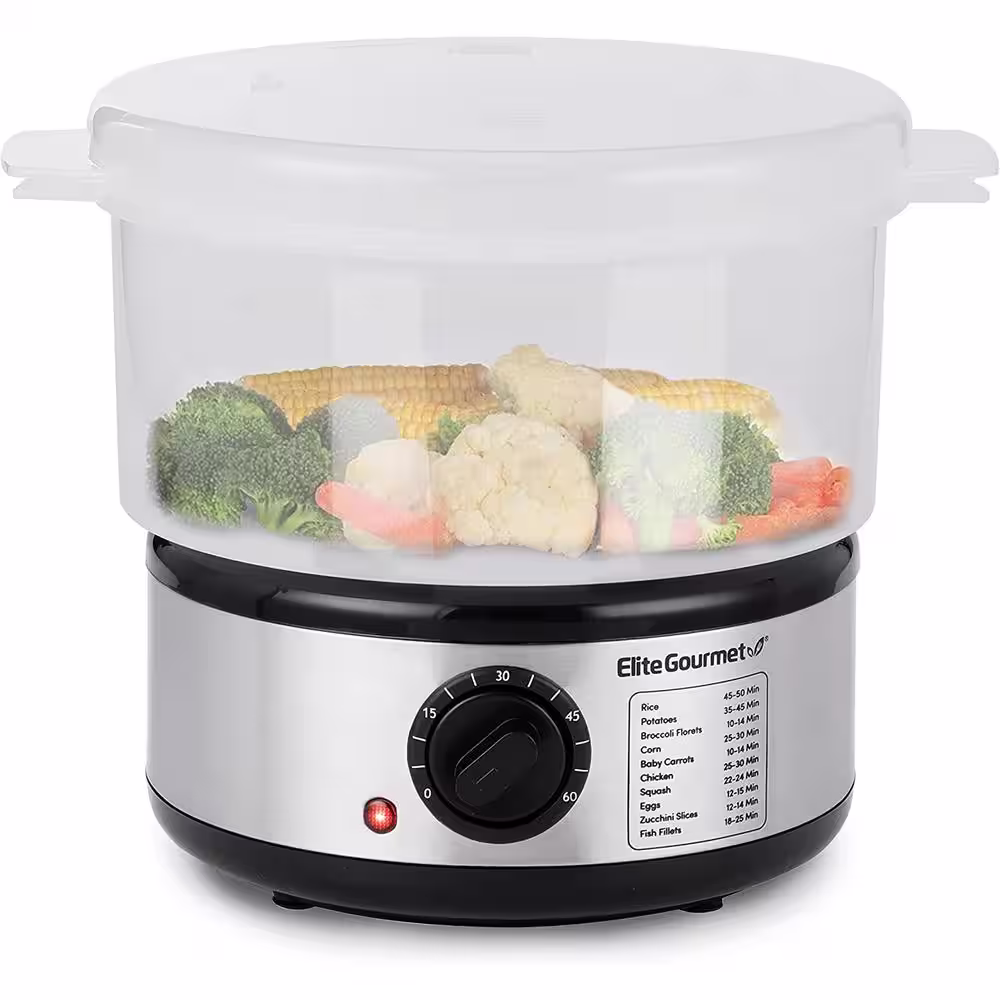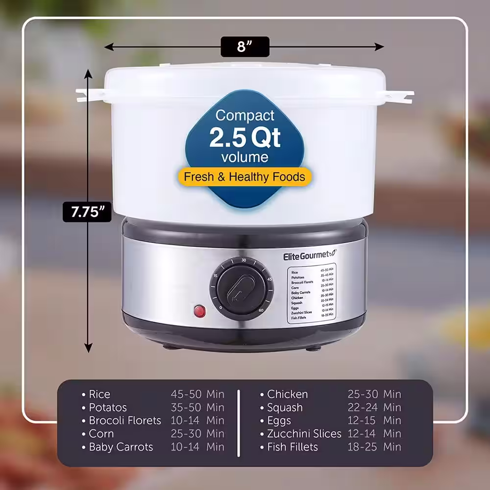 Elite Gourmet 2 Quart Elcteric Food Vegetable Steamer with BPA-Free Steamer Tray, Auto Shut-off 60-min Timer