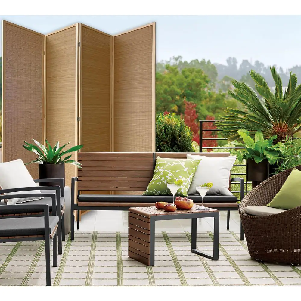 HOMCOM 6 in. Tall Chestnut Brown Wicker Weave 4-Panel Room Divider Privacy Screen