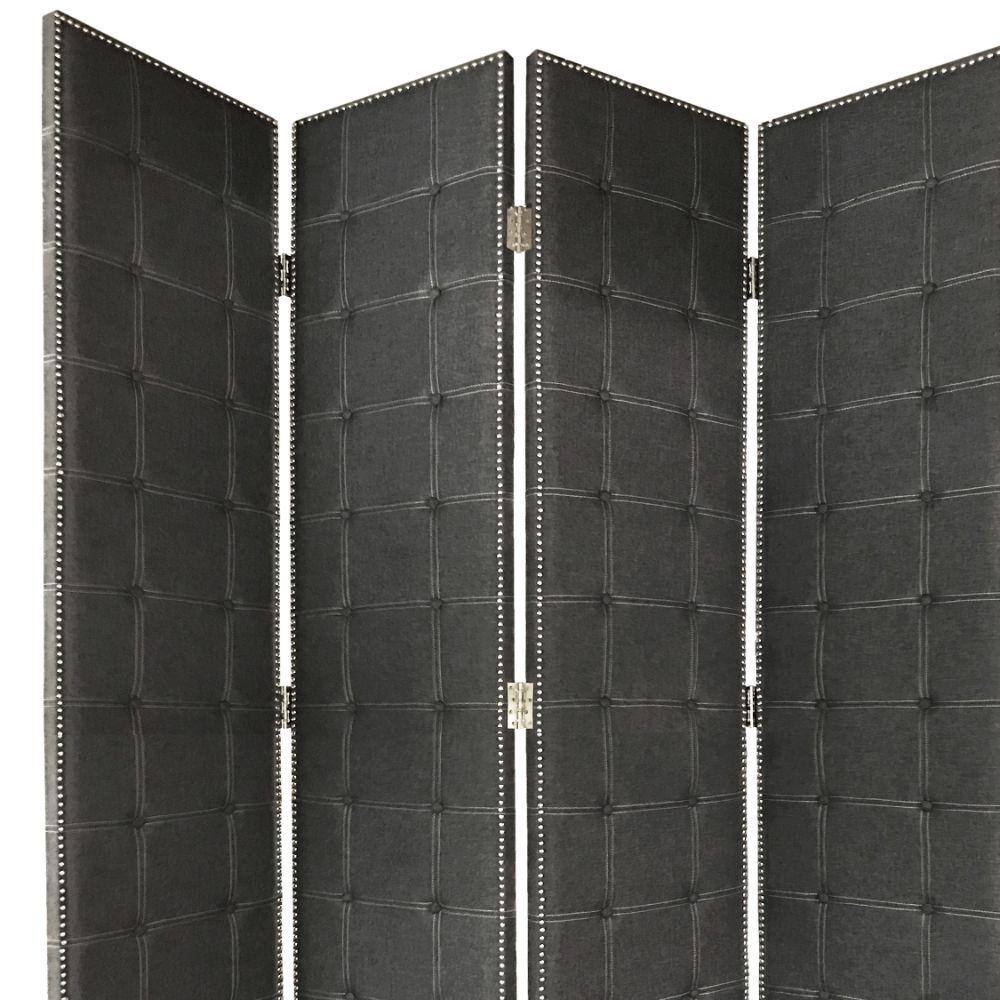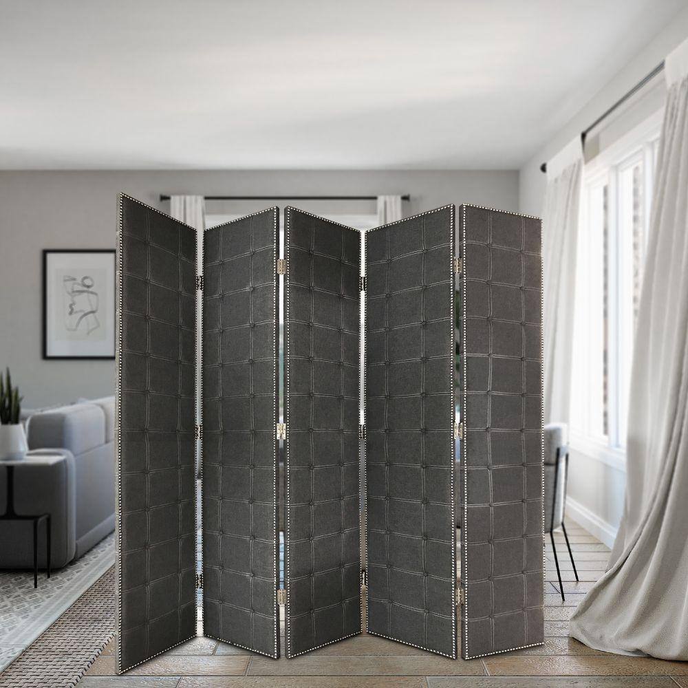 Benjara Black 5-Panel Modern Style Screen with Faux-Leather Button Tufting