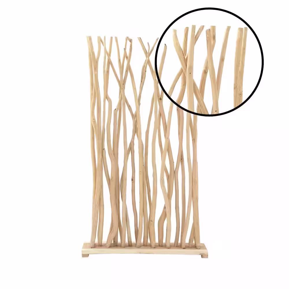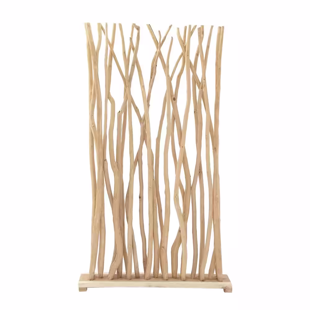 Litton Lane 7 ft. Light Brown Single Panel Tree Handmade Room Divider Screen with Raw Branches
