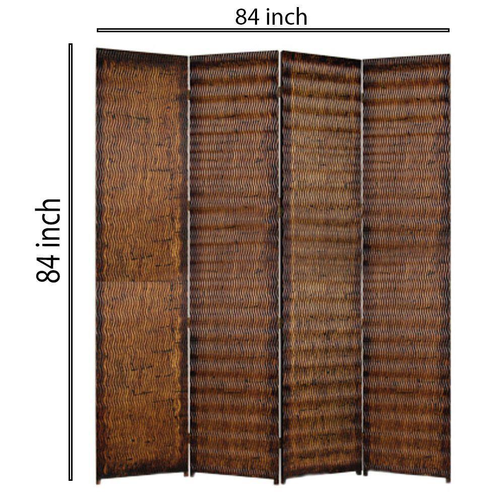 Benjara Brown Dual Tone 4-Panel Wooden Foldable Room Divider with Wavy Design