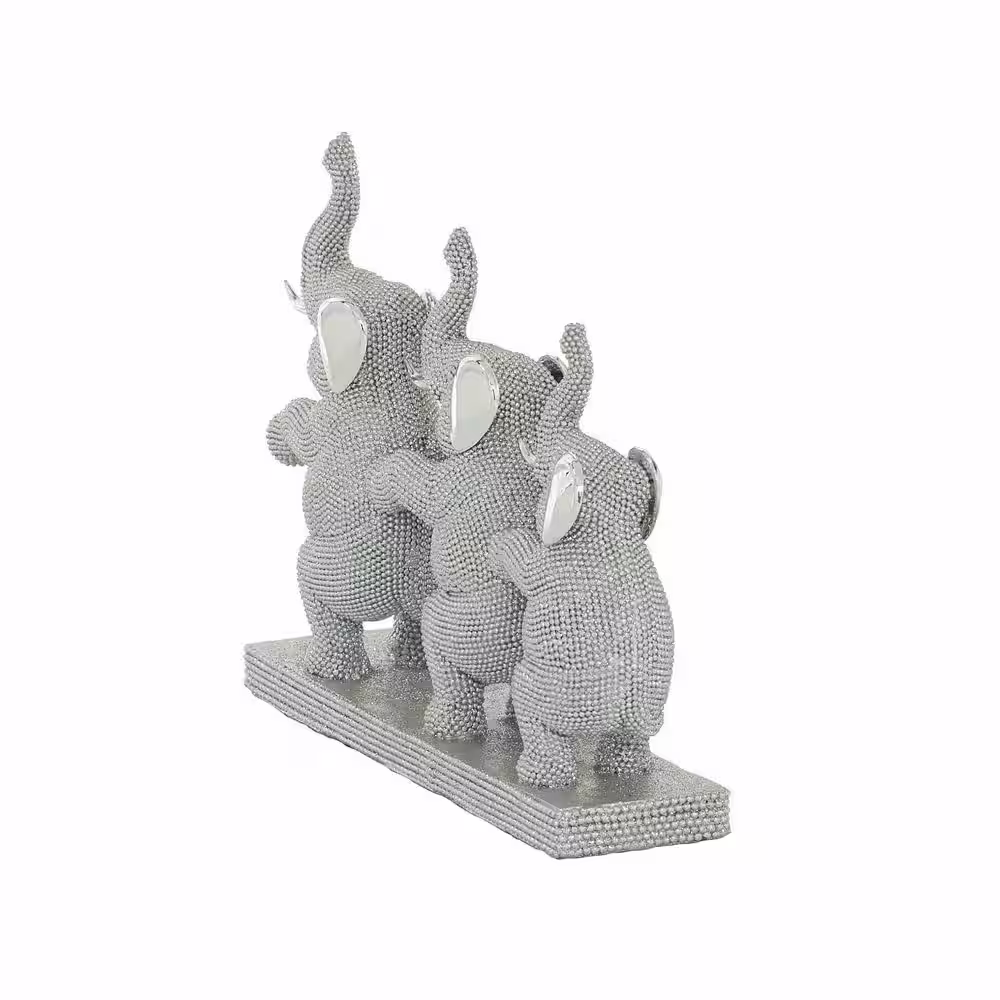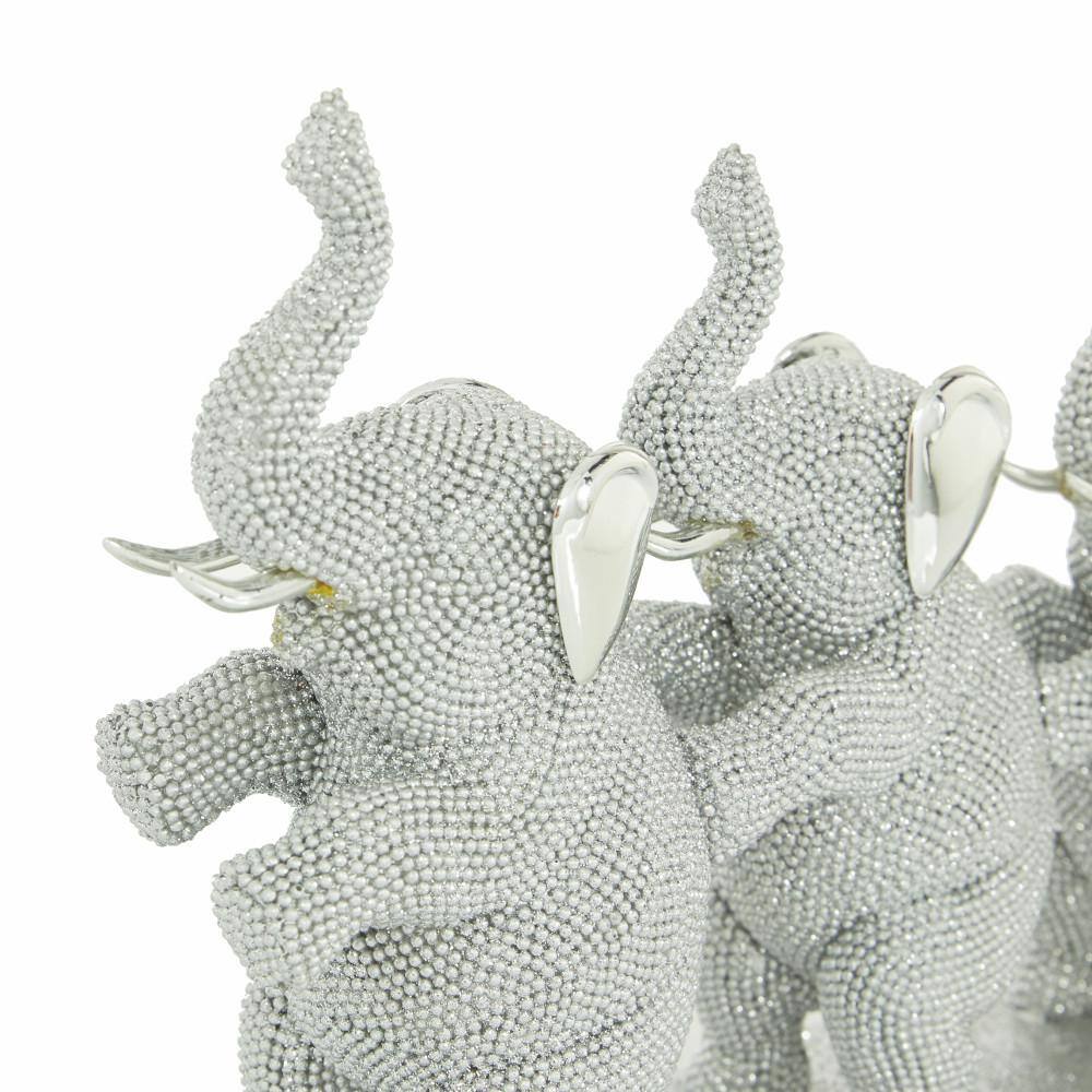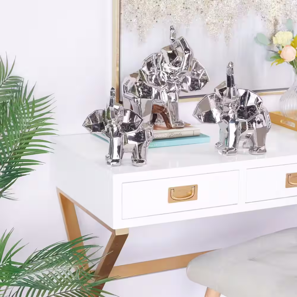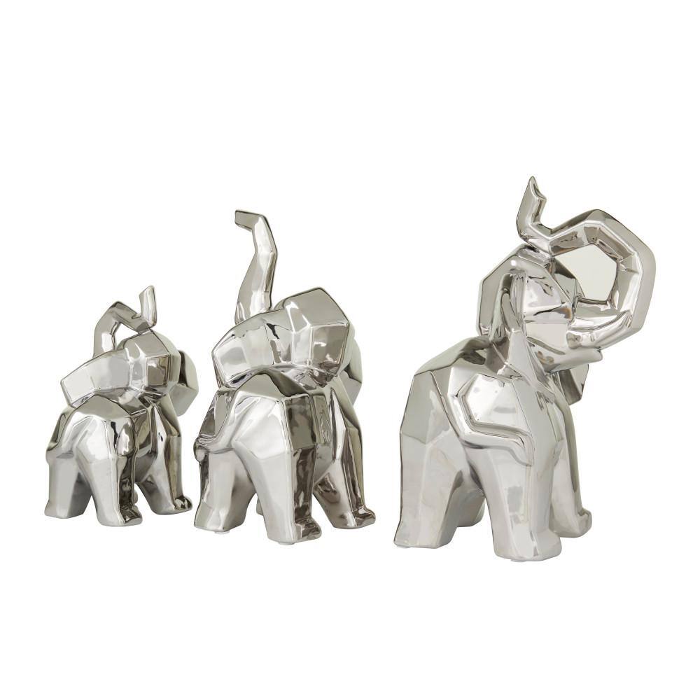 CosmoLiving by Cosmopolitan Silver Porcelain Cubist Elephant Sculpture (Set of 3)