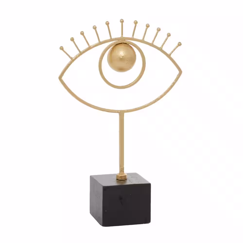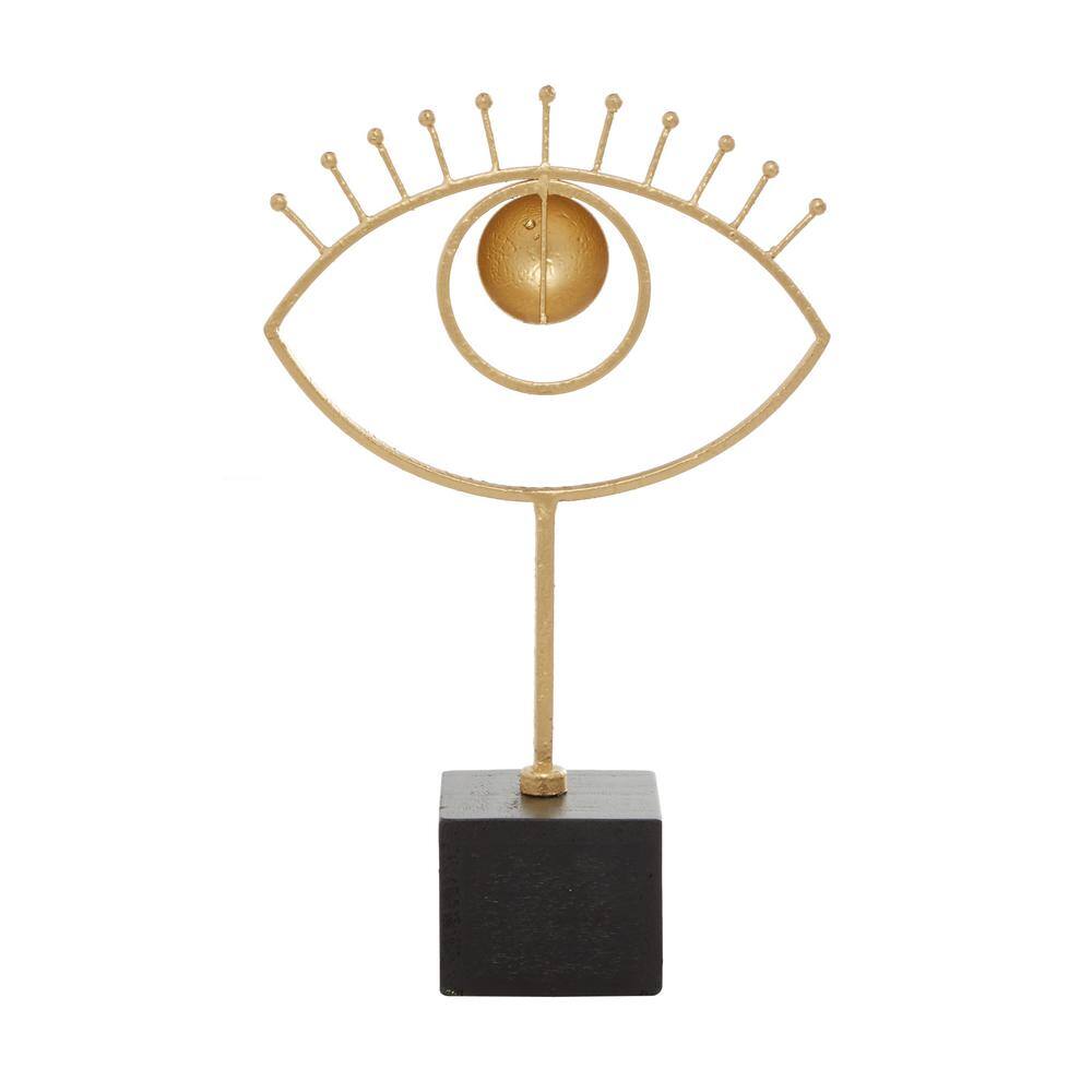 CosmoLiving by Cosmopolitan Gold Wood Handmade Eye Abstract Sculpture with Black Base
