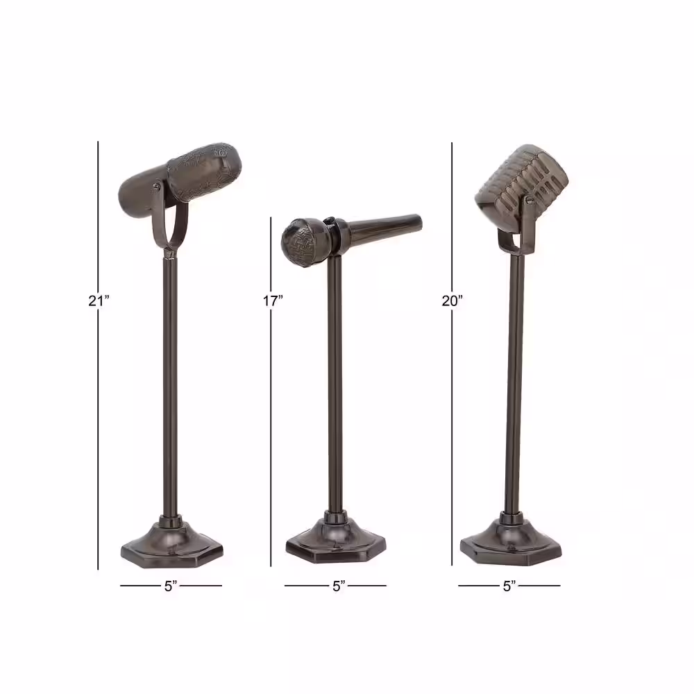 Litton Lane Modern 17 in. x 20 in. x 21 in. Metal Microphone Sculptures (Set of 3)