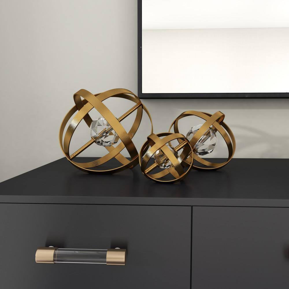 Litton Lane Gold Polystone Meditating Buddha Sculpture with Engraved Carvings and Relief Detailing (Set of 2)