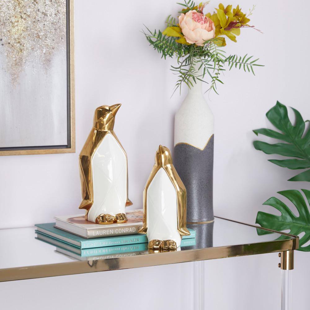 CosmoLiving by Cosmopolitan Gold Porcelain Penguin Sculpture (Set of 2)