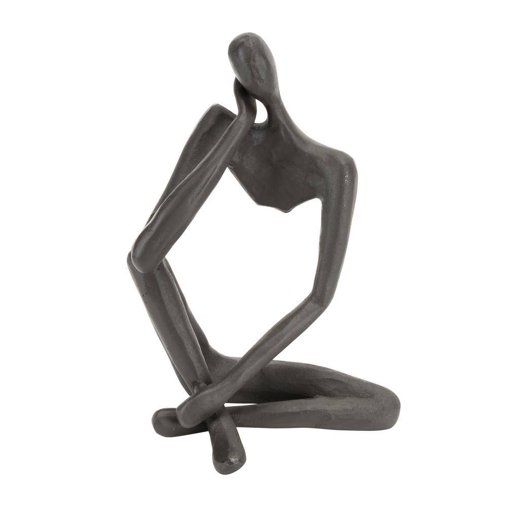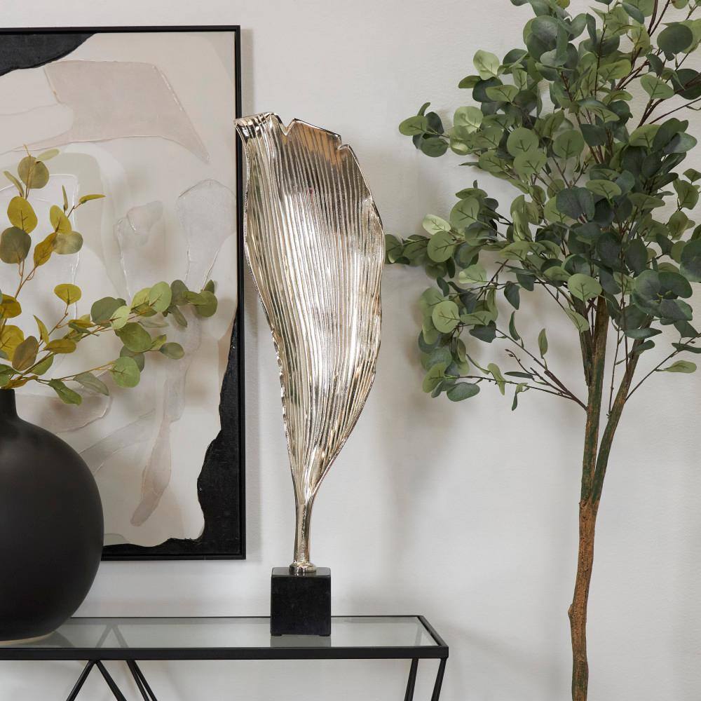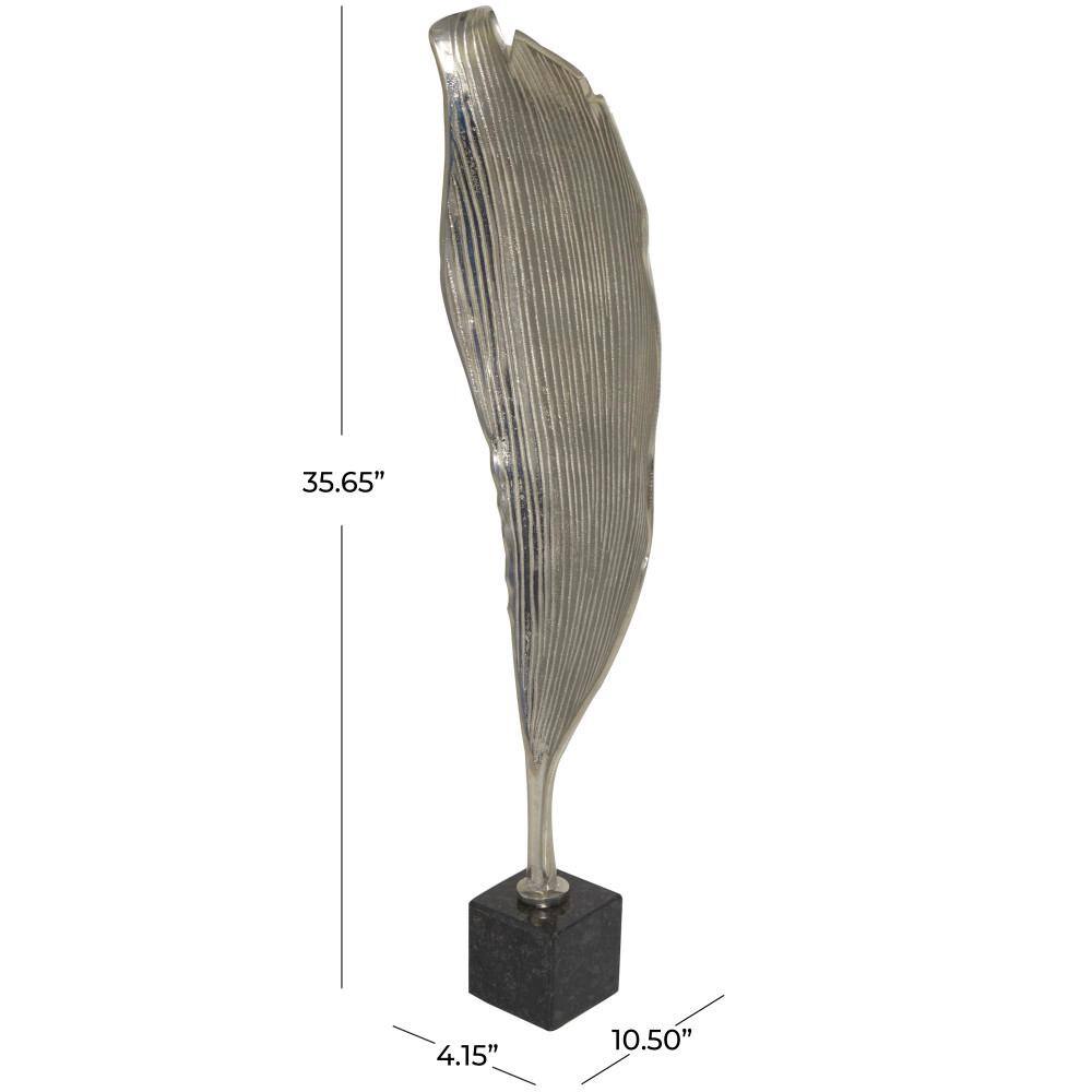 Litton Lane Silver Aluminum Textured Leaf Abstract Sculpture with Black Marble Base
