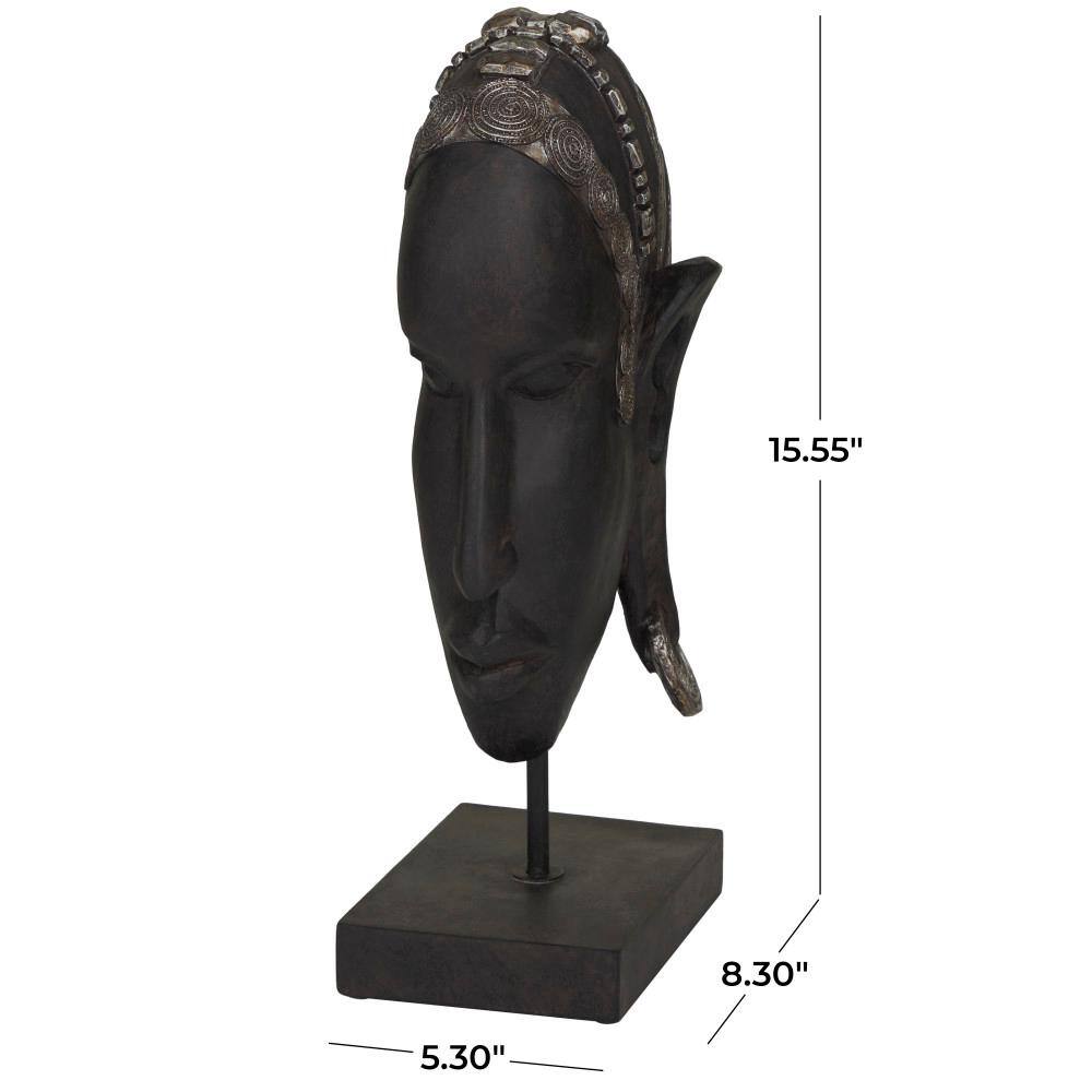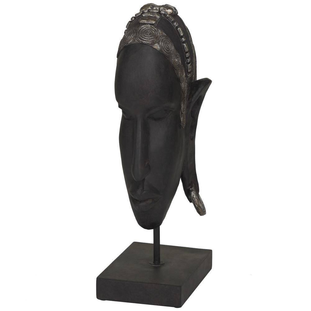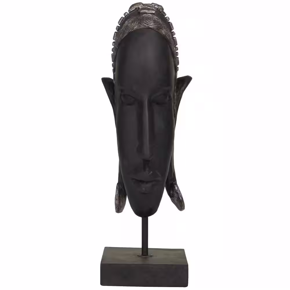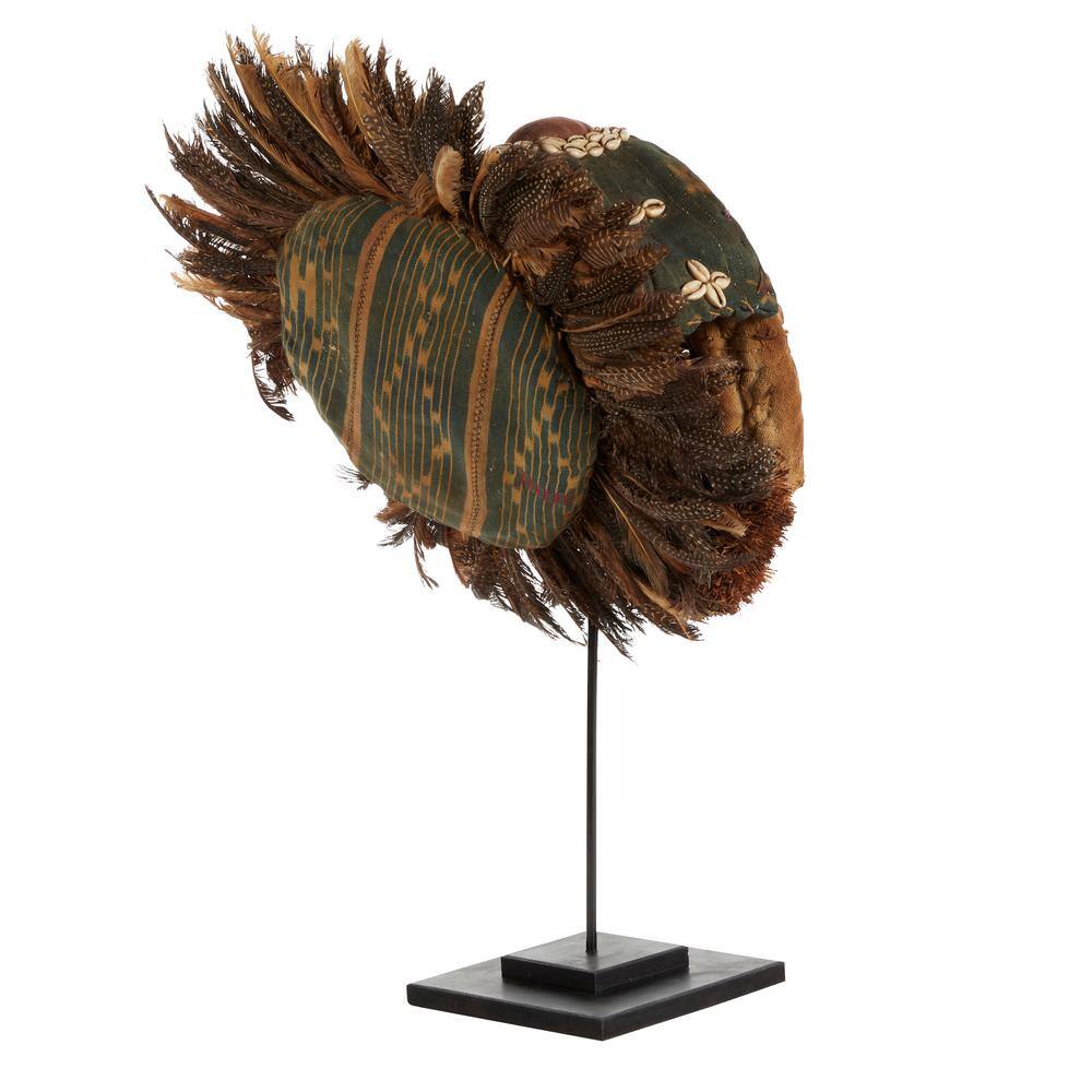 Litton Lane Large Hand-Carved Baobab Wood, Chicken Feathers and Cowrie Shell Dan Mask on Stand